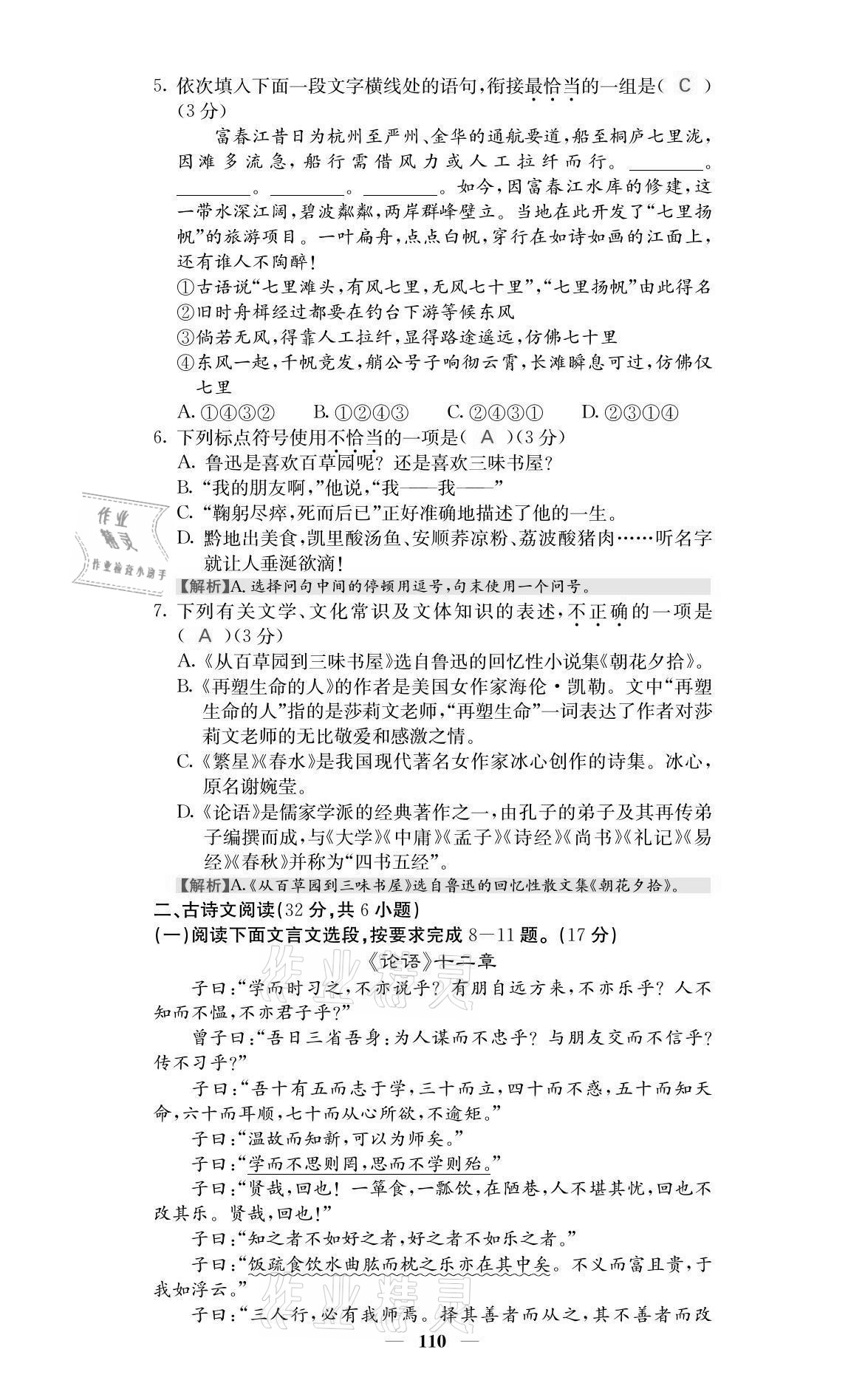 注:目前有些书本章节名称可能整理的还不是很完善,但都是按照顺序排列的,请同学们按照顺序仔细查找。练习册 2021年名校课堂内外七年级语文上册人教版黔东南专版 答案主要是用来给同学们做完题方便对答案用的,请勿直接抄袭。