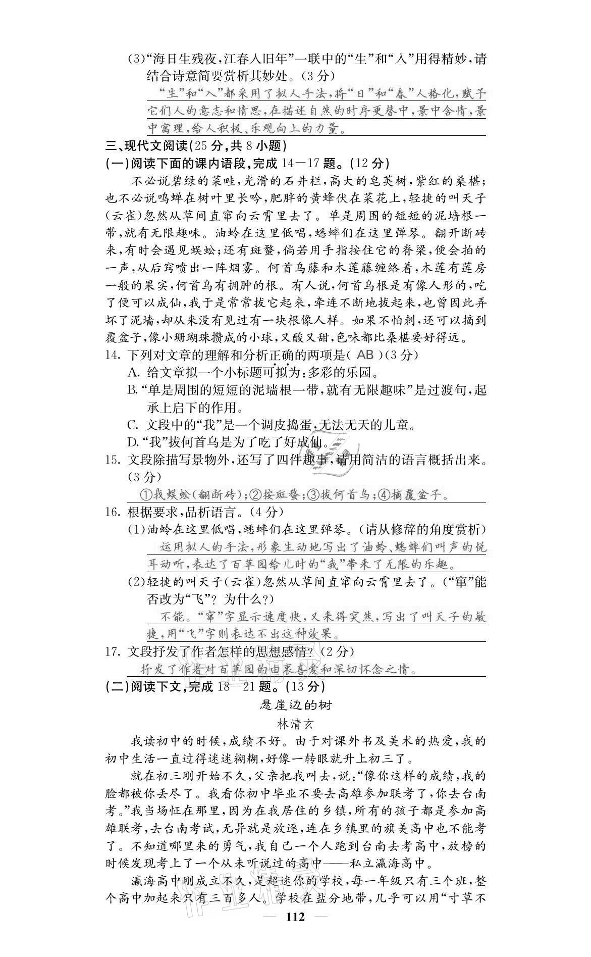 注:目前有些书本章节名称可能整理的还不是很完善,但都是按照顺序排列的,请同学们按照顺序仔细查找。练习册 2021年名校课堂内外七年级语文上册人教版黔东南专版 答案主要是用来给同学们做完题方便对答案用的,请勿直接抄袭。
