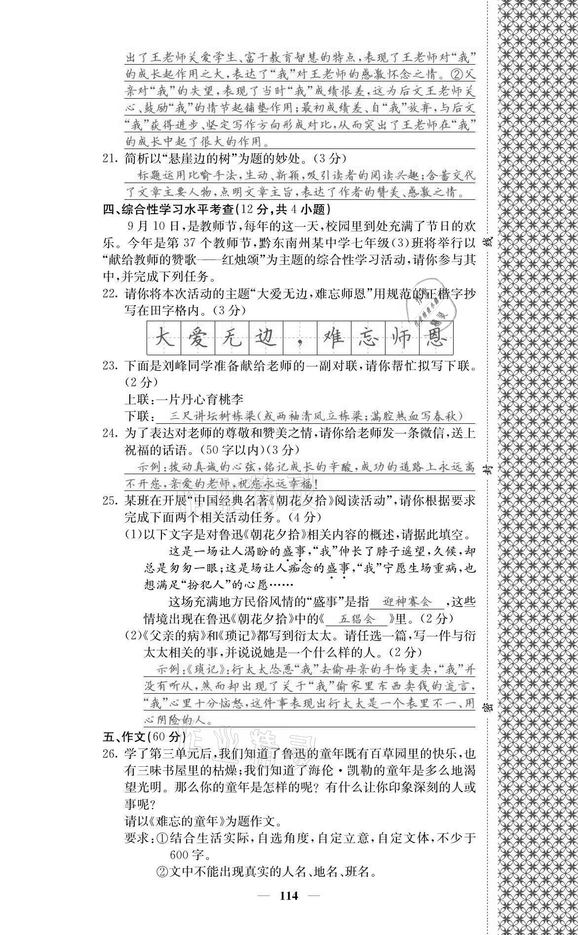 《2021年名校课堂内外七年级语文上册人教版黔东南专版》