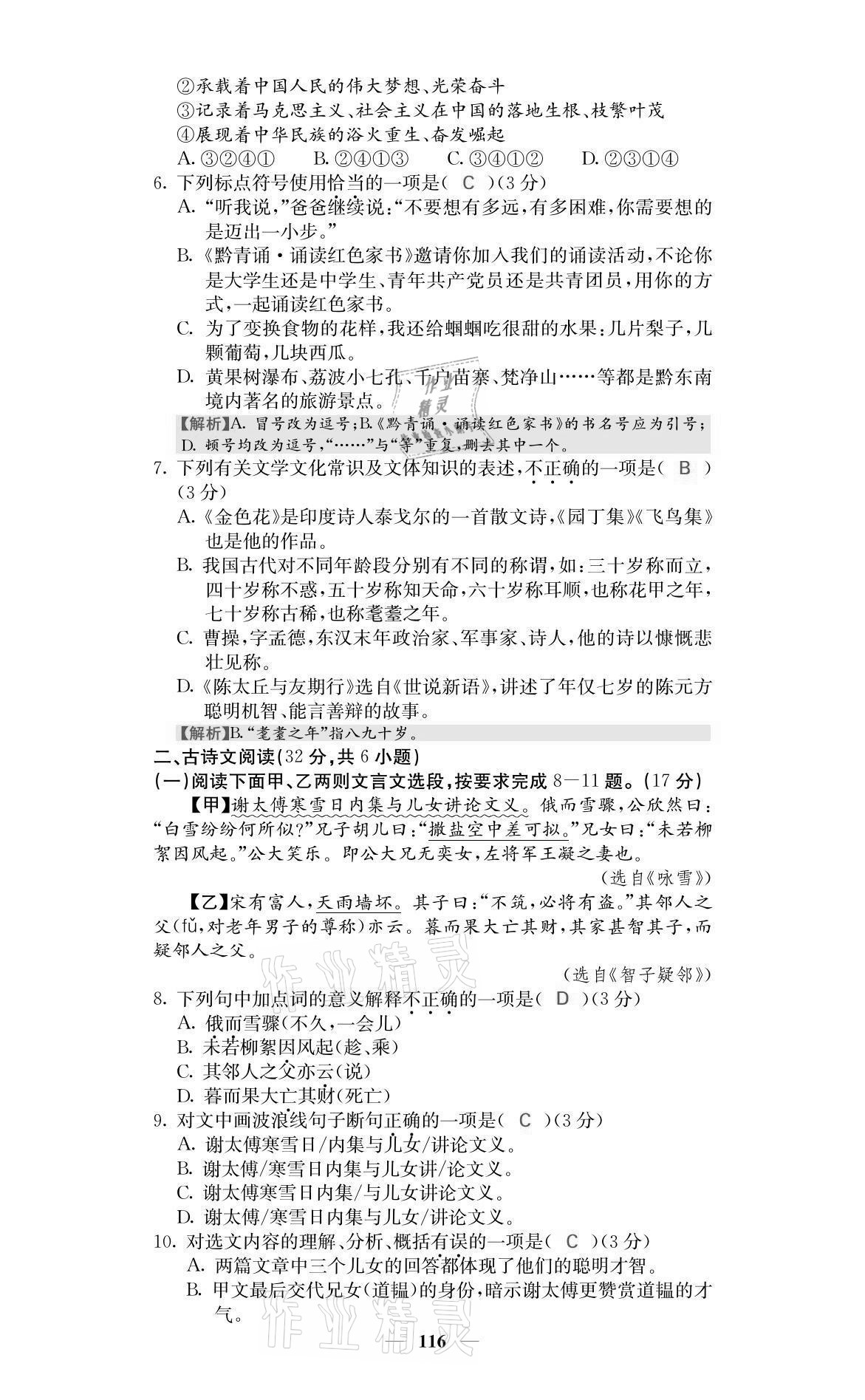 注:目前有些书本章节名称可能整理的还不是很完善,但都是按照顺序排列的,请同学们按照顺序仔细查找。练习册 2021年名校课堂内外七年级语文上册人教版黔东南专版 答案主要是用来给同学们做完题方便对答案用的,请勿直接抄袭。