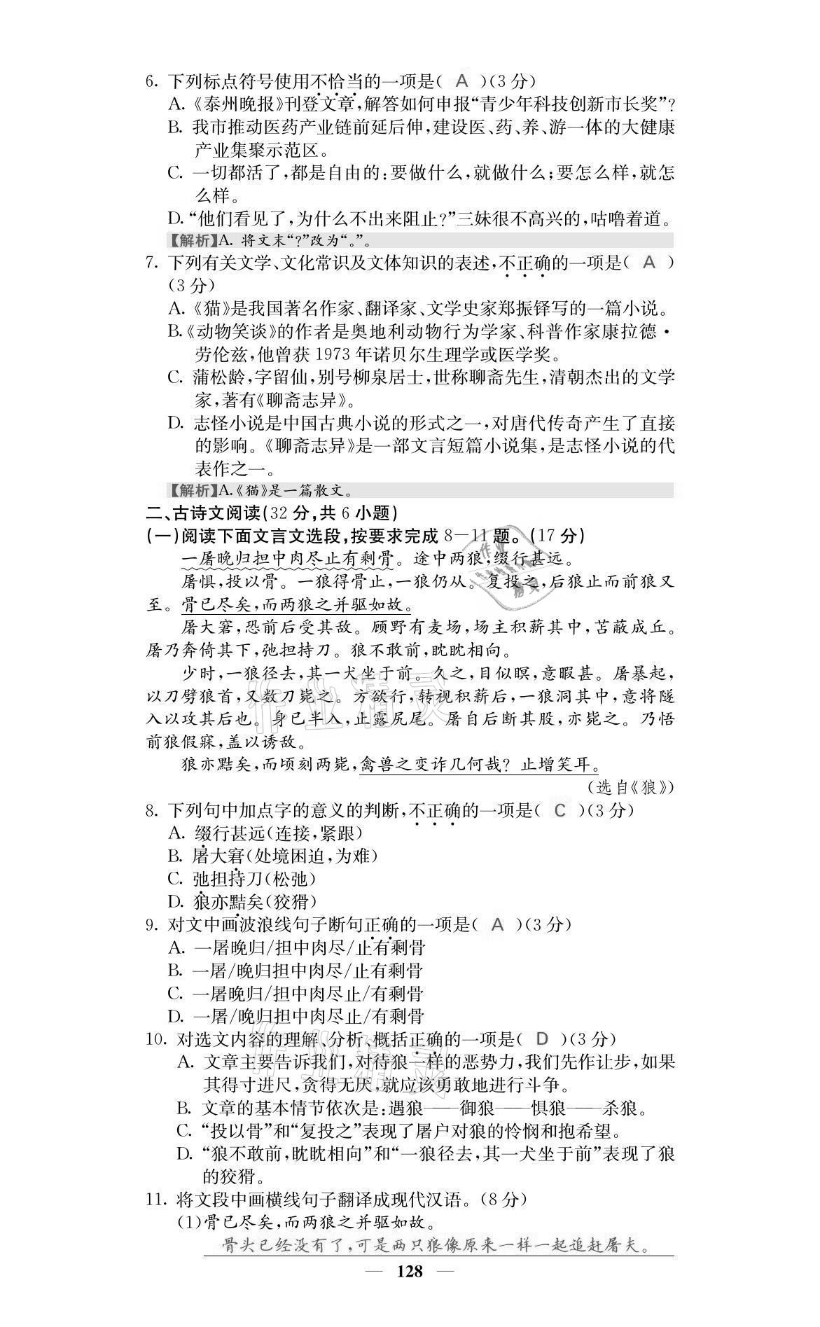 注:目前有些书本章节名称可能整理的还不是很完善,但都是按照顺序排列的,请同学们按照顺序仔细查找。练习册 2021年名校课堂内外七年级语文上册人教版黔东南专版 答案主要是用来给同学们做完题方便对答案用的,请勿直接抄袭。