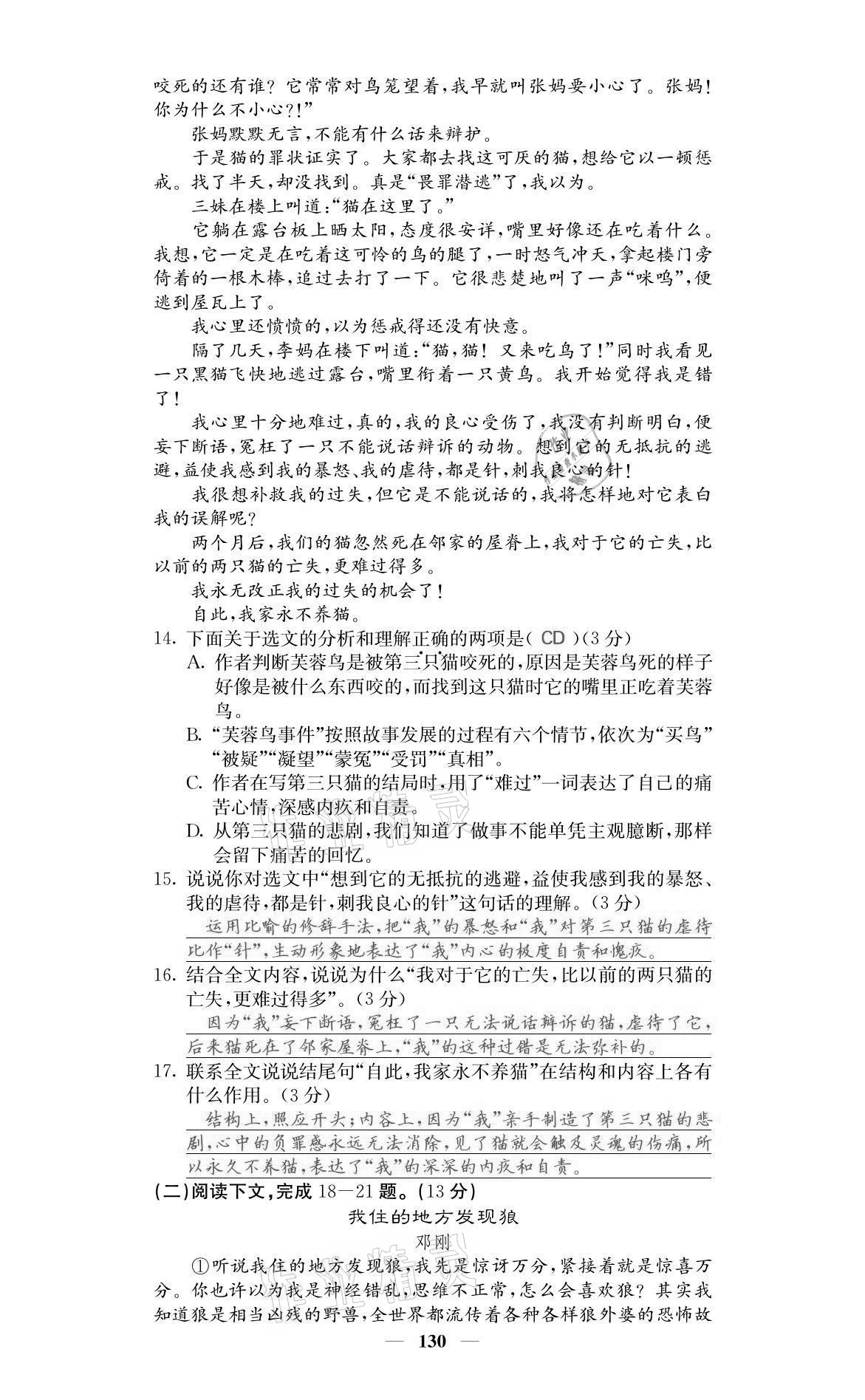 注:目前有些书本章节名称可能整理的还不是很完善,但都是按照顺序排列的,请同学们按照顺序仔细查找。练习册 2021年名校课堂内外七年级语文上册人教版黔东南专版 答案主要是用来给同学们做完题方便对答案用的,请勿直接抄袭。