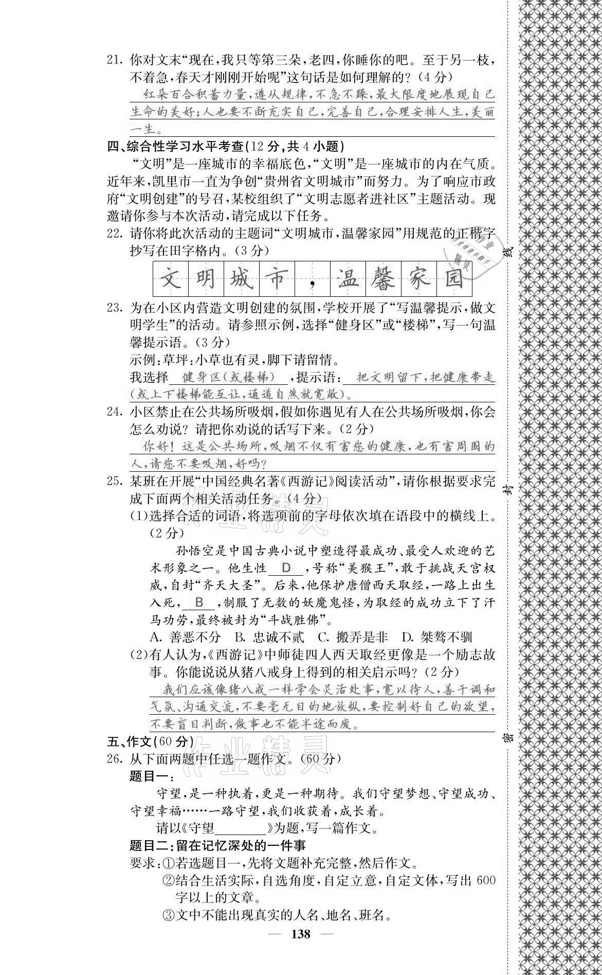 2021年名校课堂内外七年级语文上册人教版黔东南专版