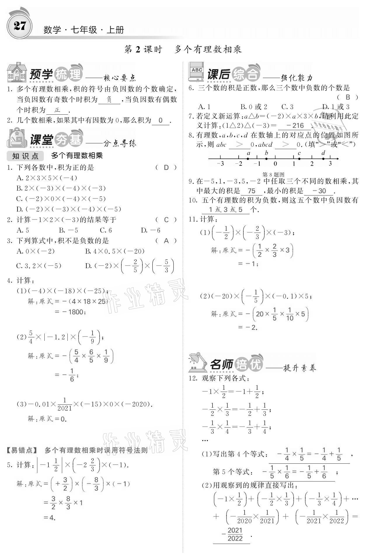 2021年名校课堂内外七年级数学上册人教版黔东南专版