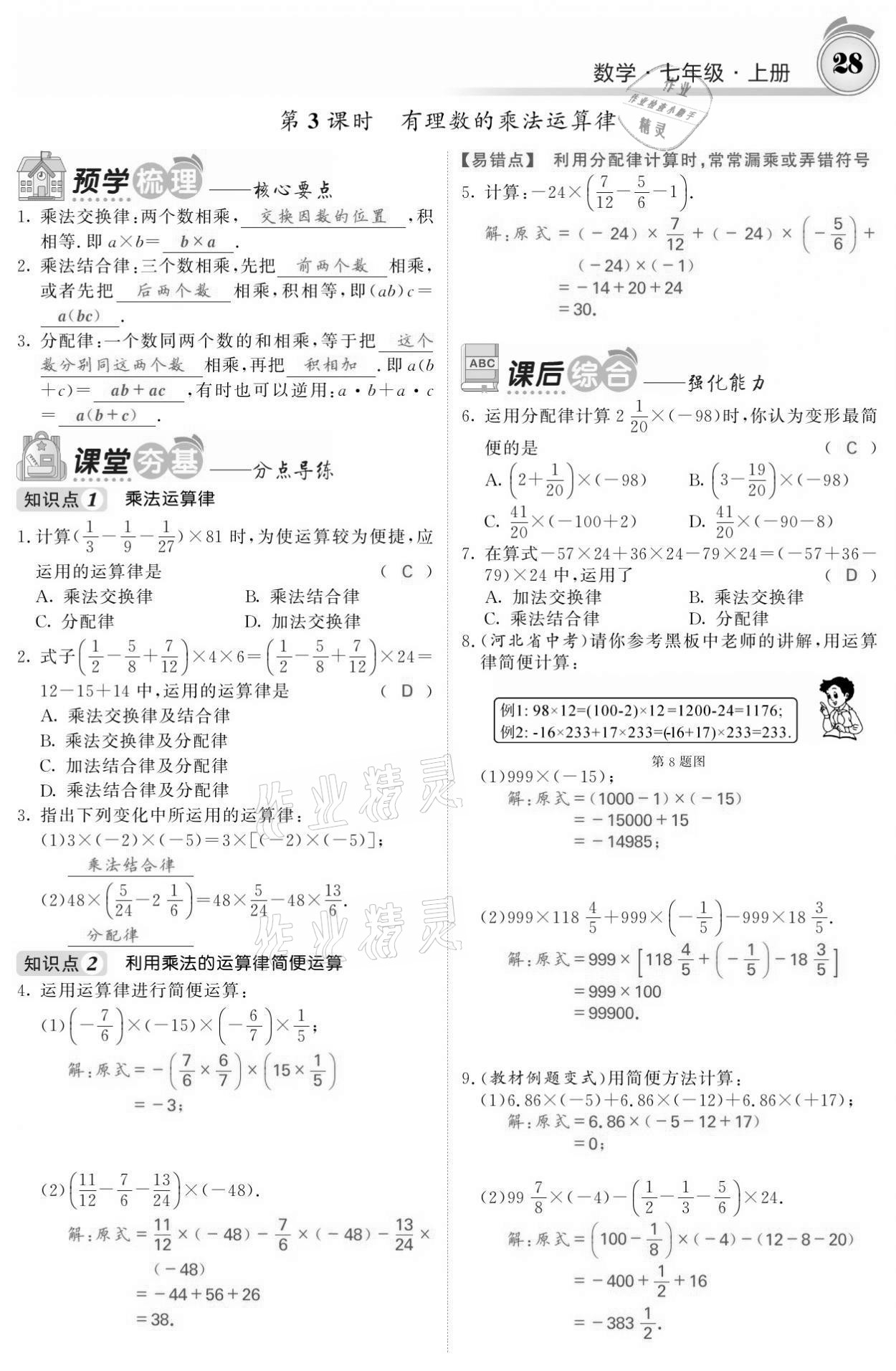2021年名校课堂内外七年级数学上册人教版黔东南专版