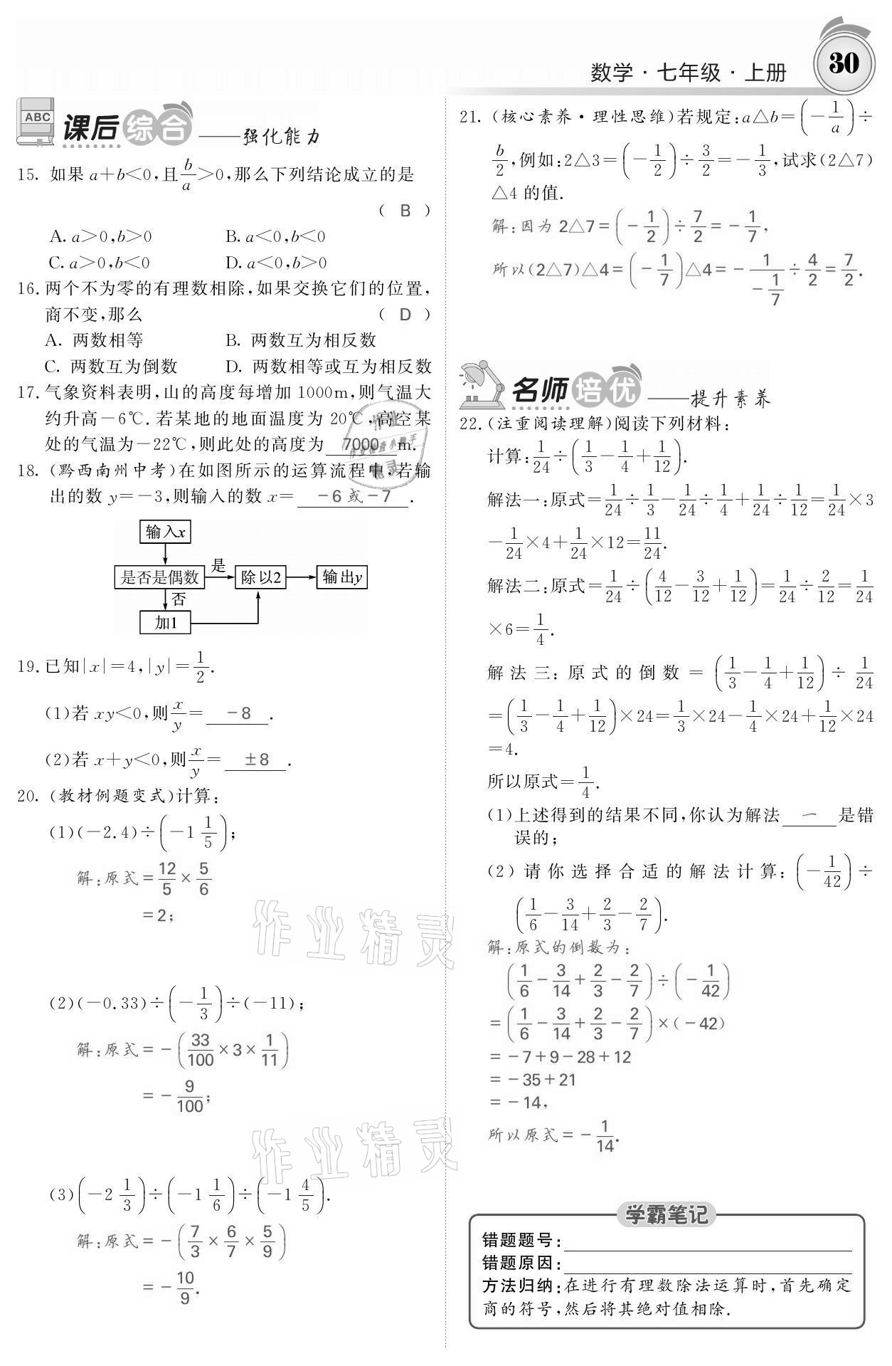 2021年名校课堂内外七年级数学上册人教版黔东南专版