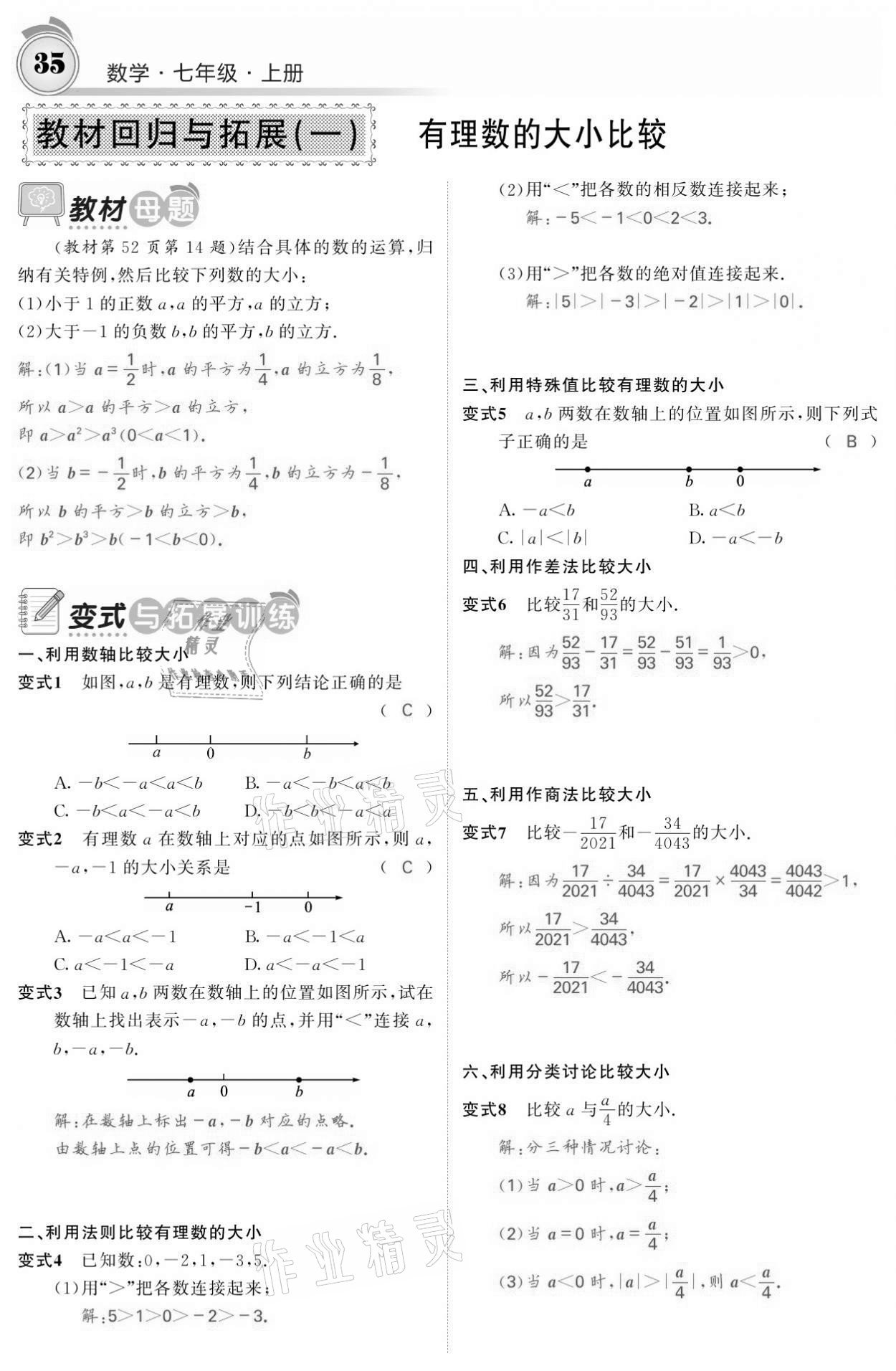 2021年名校课堂内外七年级数学上册人教版黔东南专版