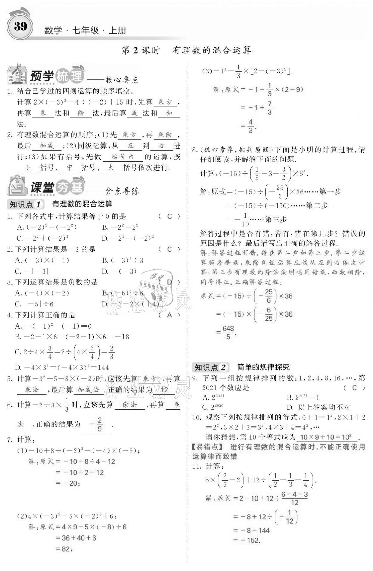 2021年名校课堂内外七年级数学上册人教版黔东南专版