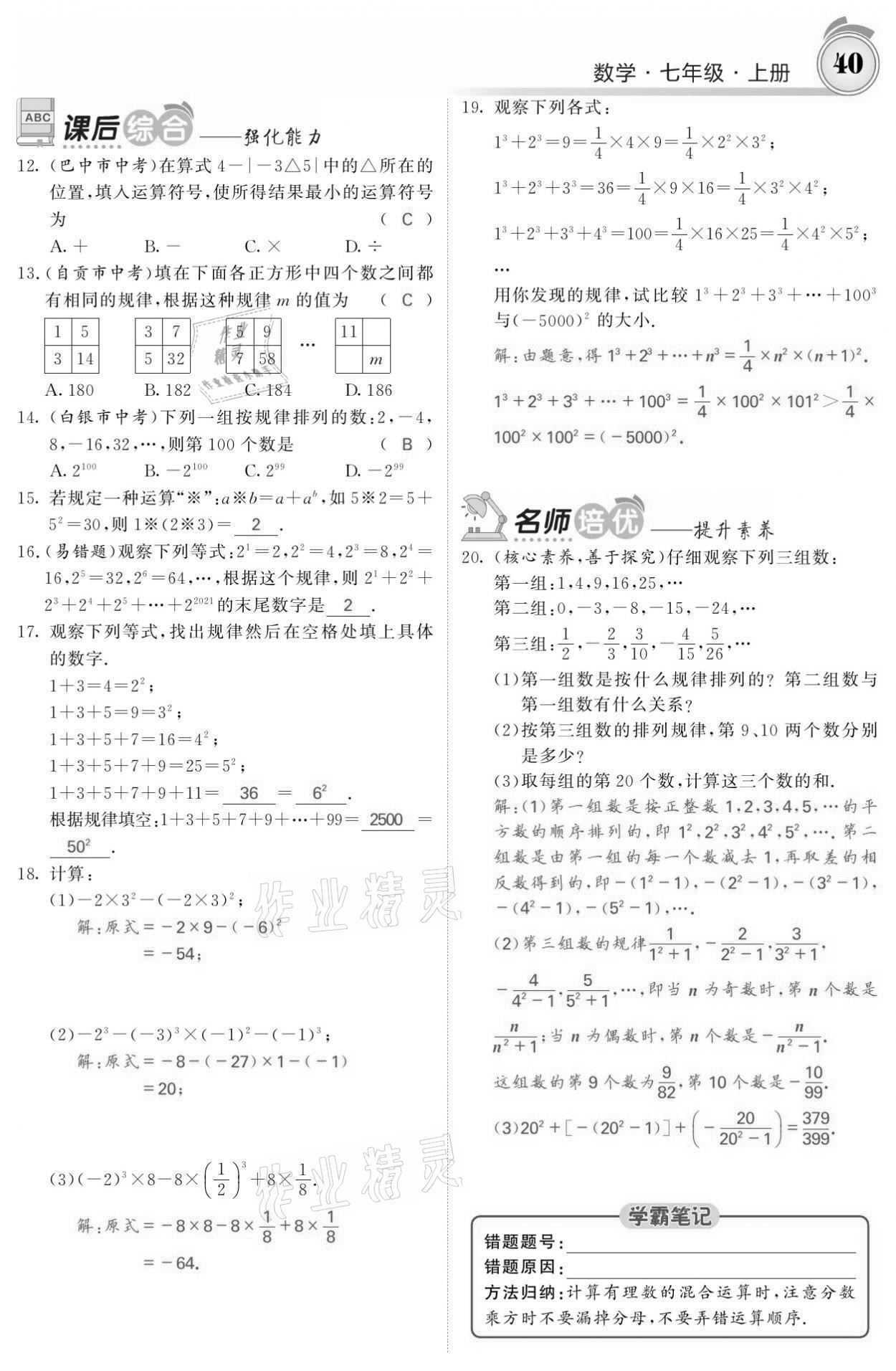 2021年名校课堂内外七年级数学上册人教版黔东南专版