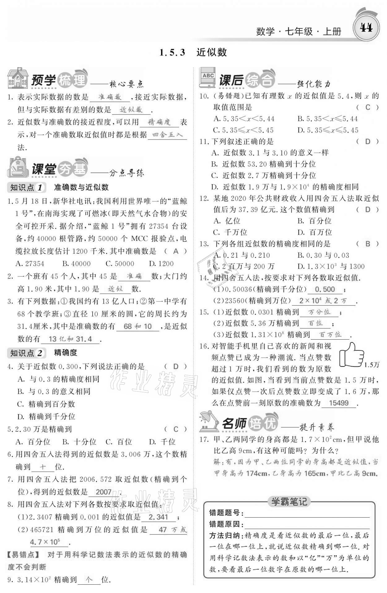 《2021年名校课堂内外七年级数学上册人教版黔东南专版》