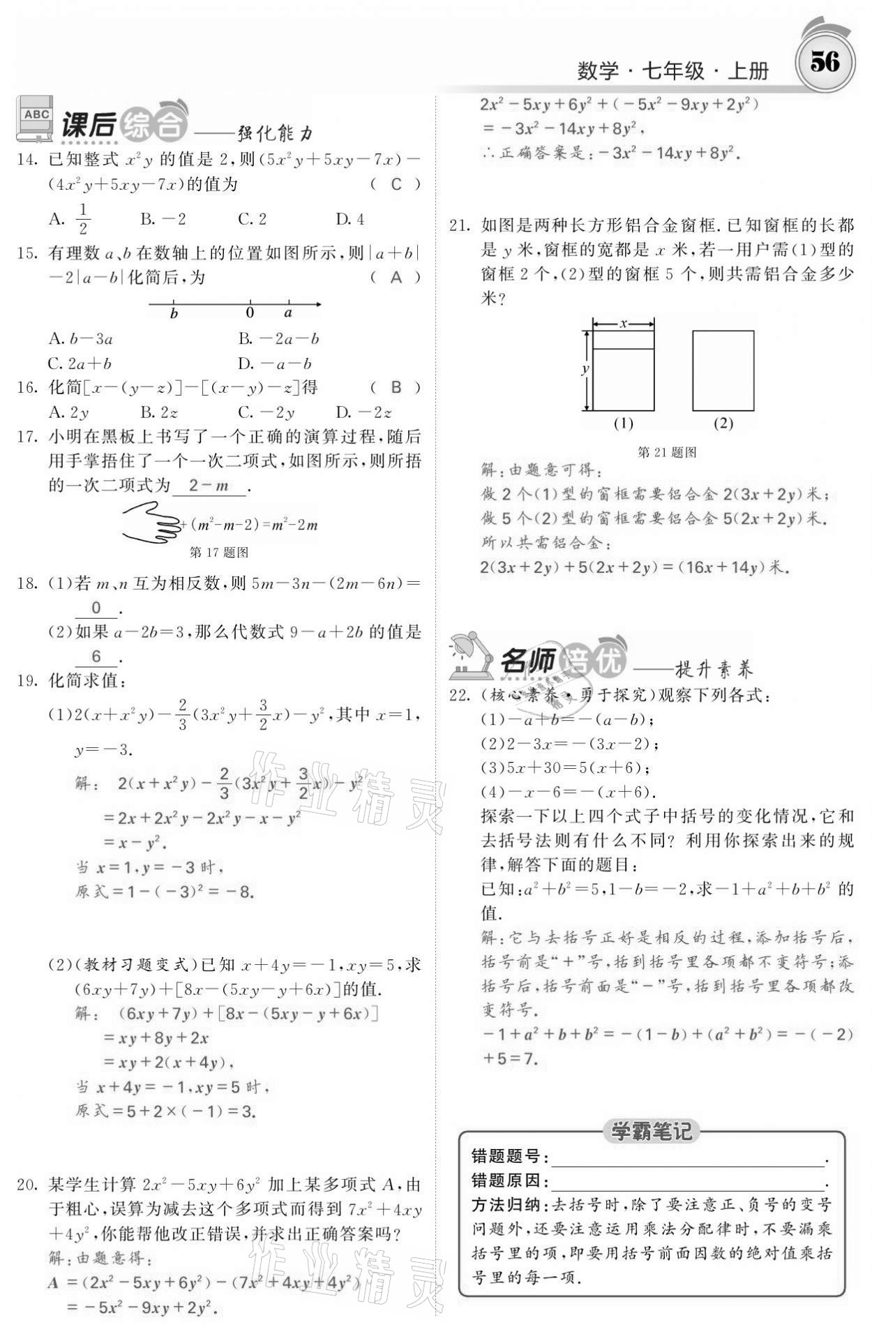 2021年名校课堂内外七年级数学上册人教版黔东南专版