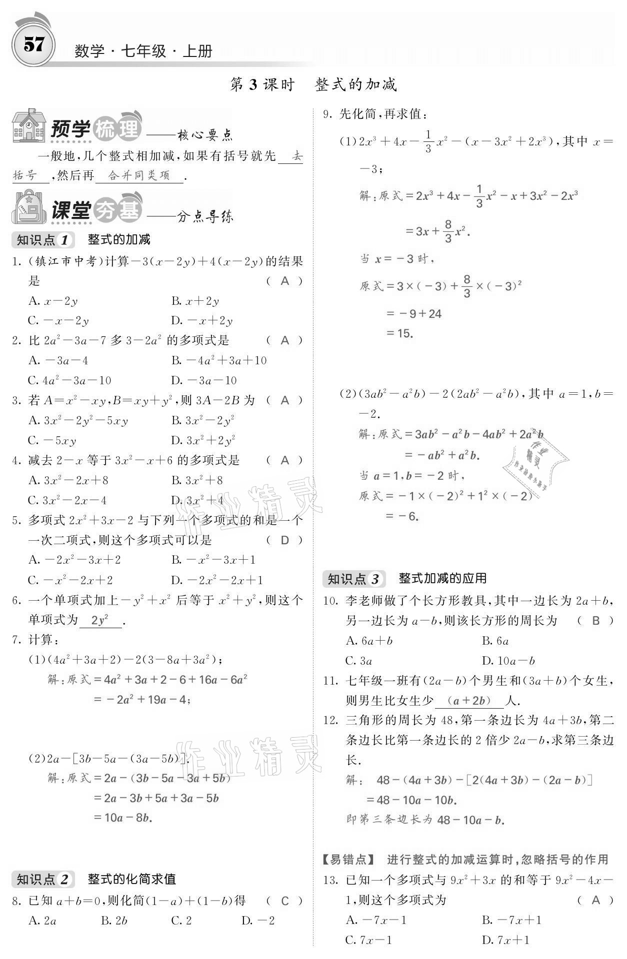 2021年名校课堂内外七年级数学上册人教版黔东南专版