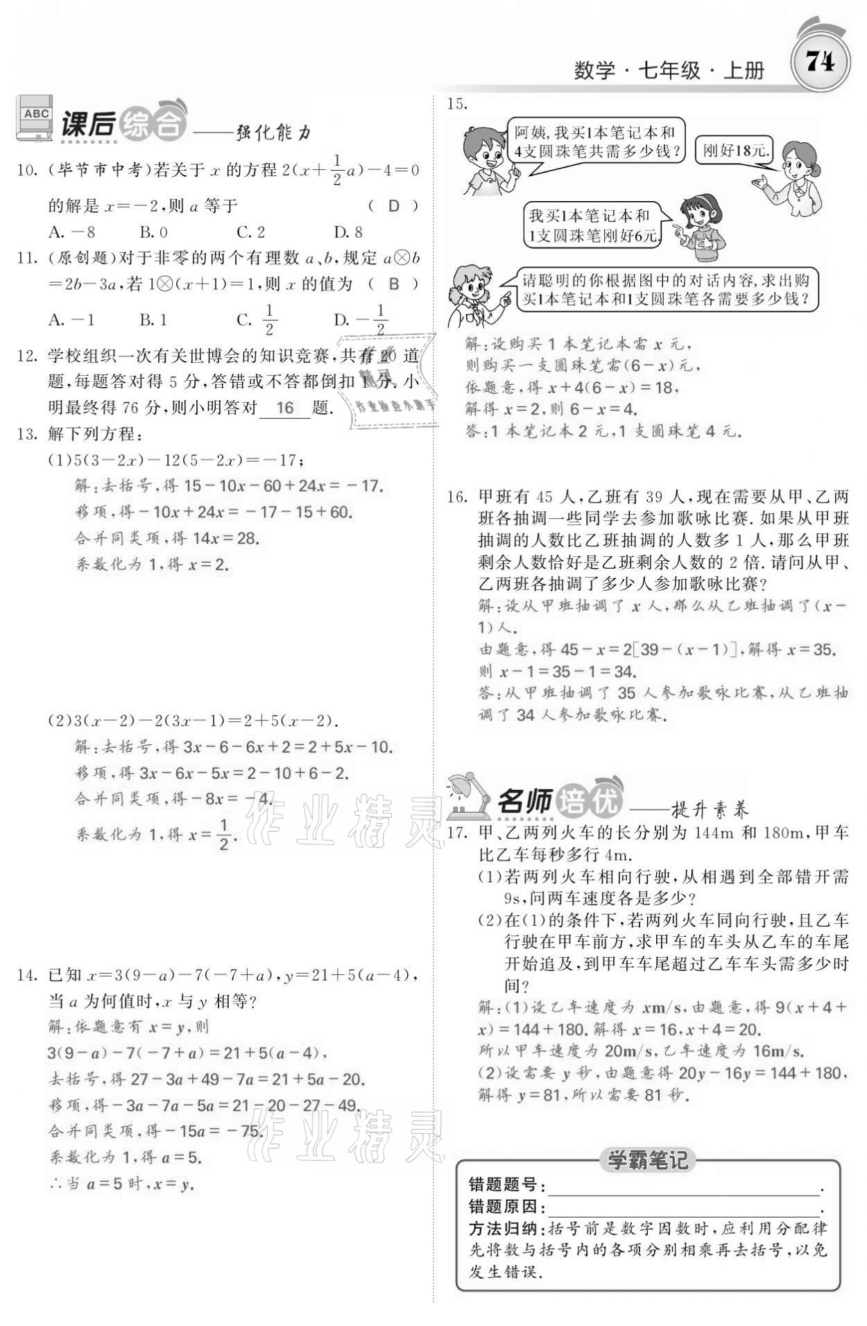 2021年名校课堂内外七年级数学上册人教版黔东南专版