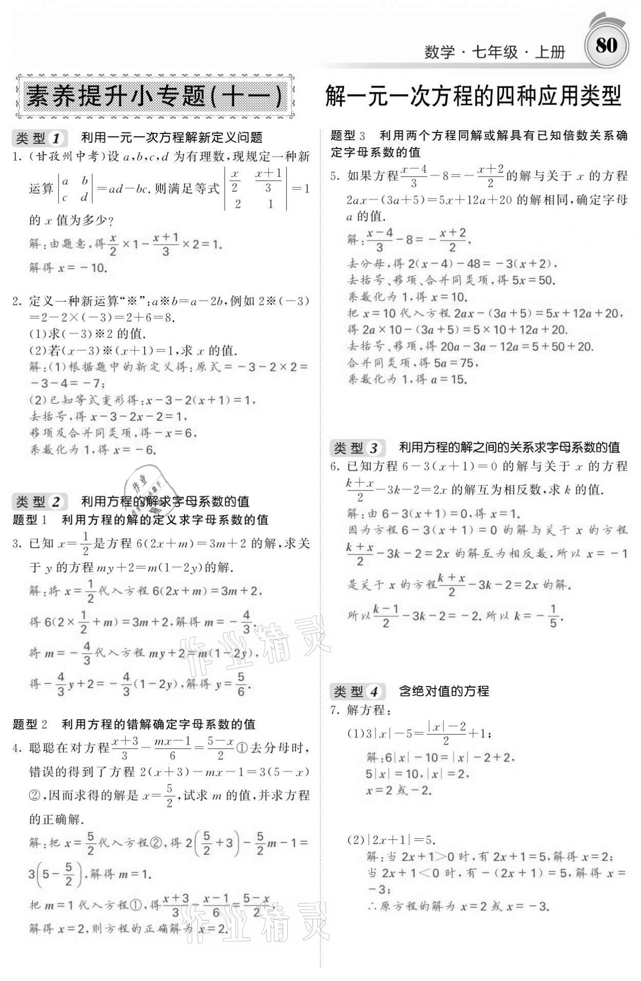 2021年名校课堂内外七年级数学上册人教版黔东南专版