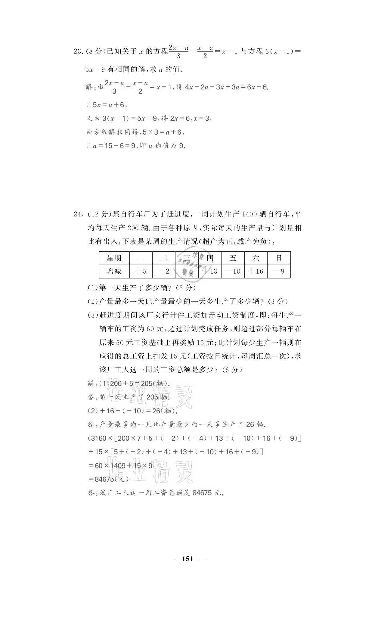 2021年名校课堂内外七年级数学上册人教版黔东南专版