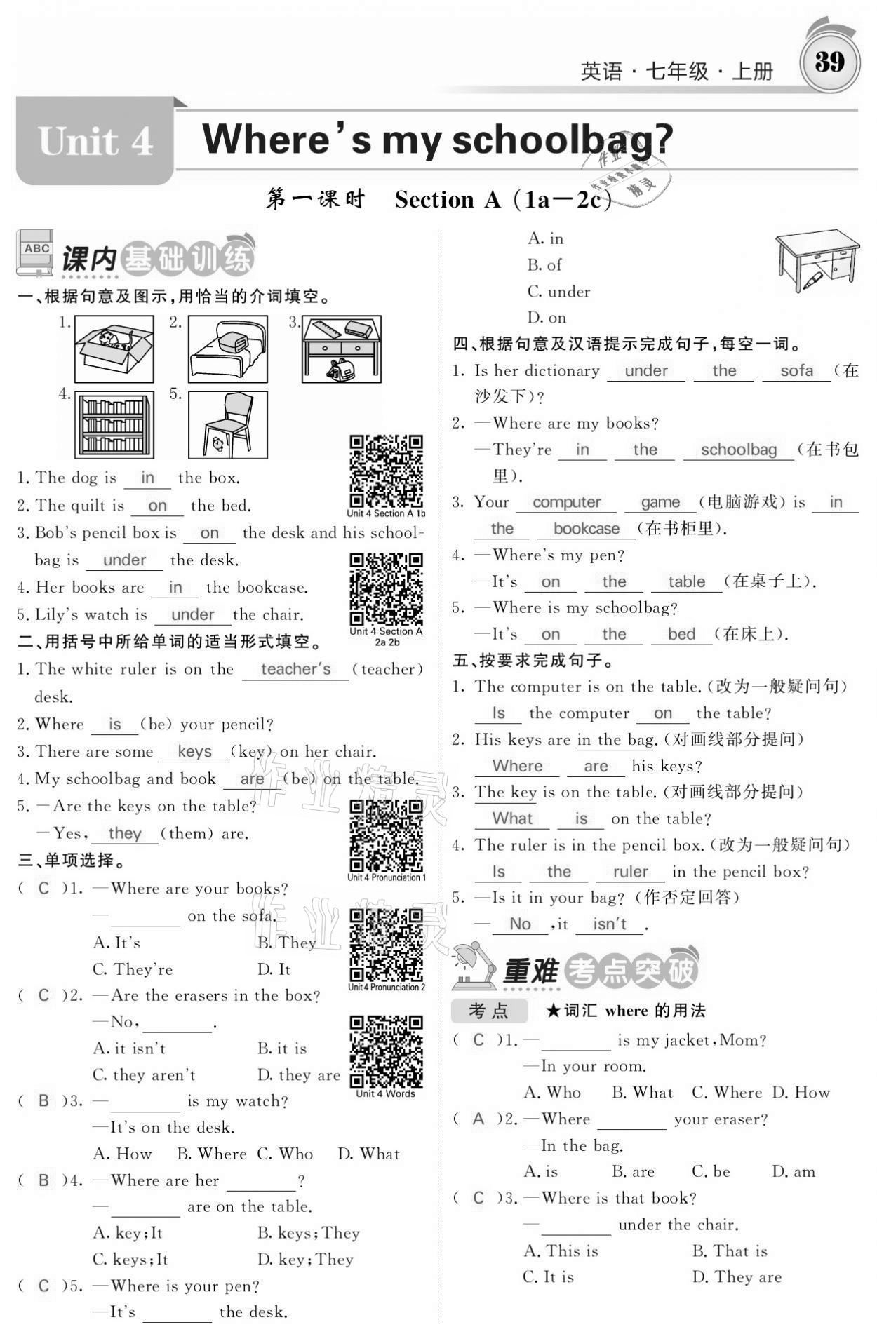 注:目前有些书本章节名称可能整理的还不是很完善,但都是按照顺序排列的,请同学们按照顺序仔细查找。练习册 2021年名校课堂内外七年级英语上册人教版黔东南专版 答案主要是用来给同学们做完题方便对答案用的,请勿直接抄袭。