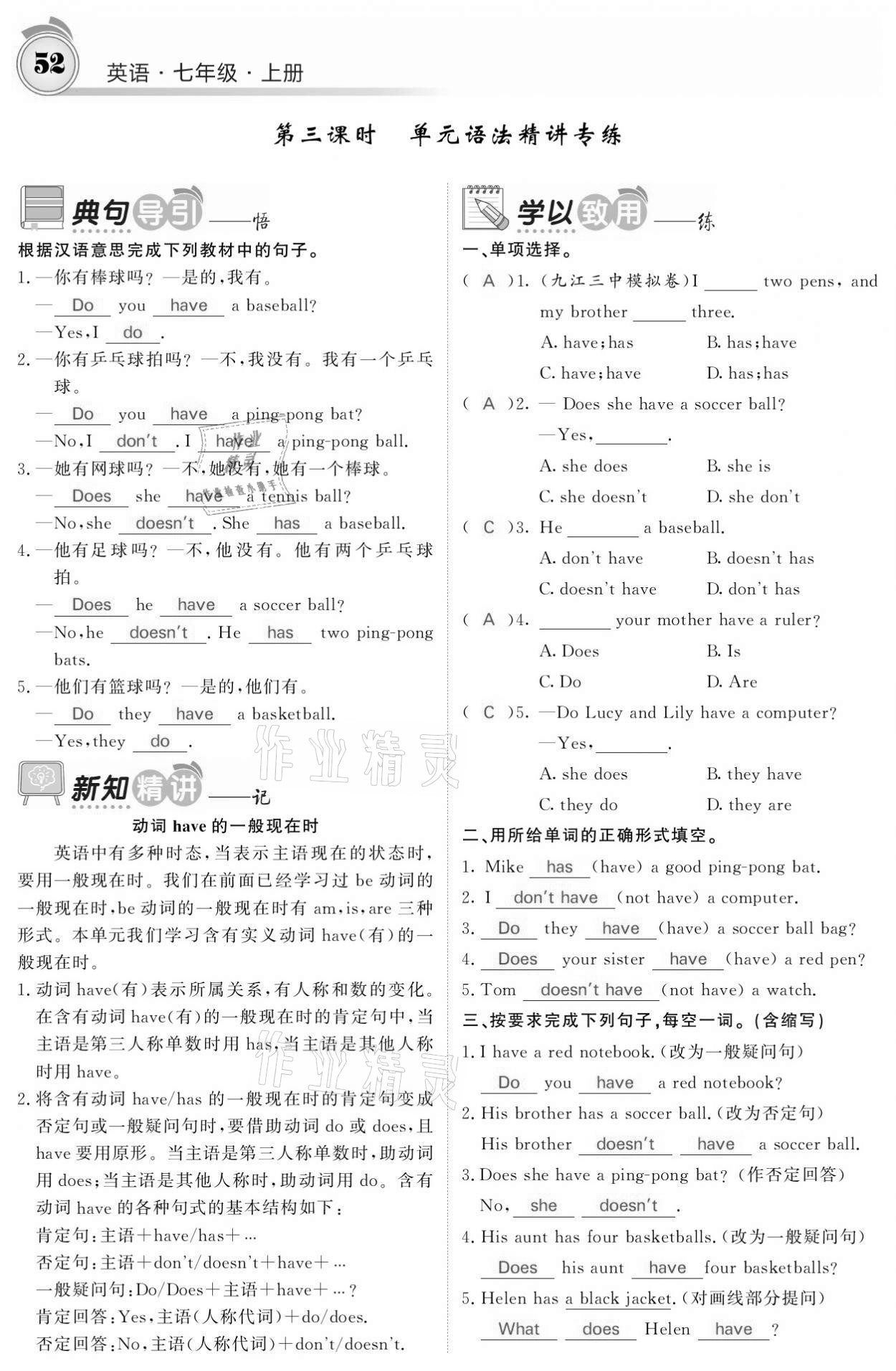 - 参考答案第52页