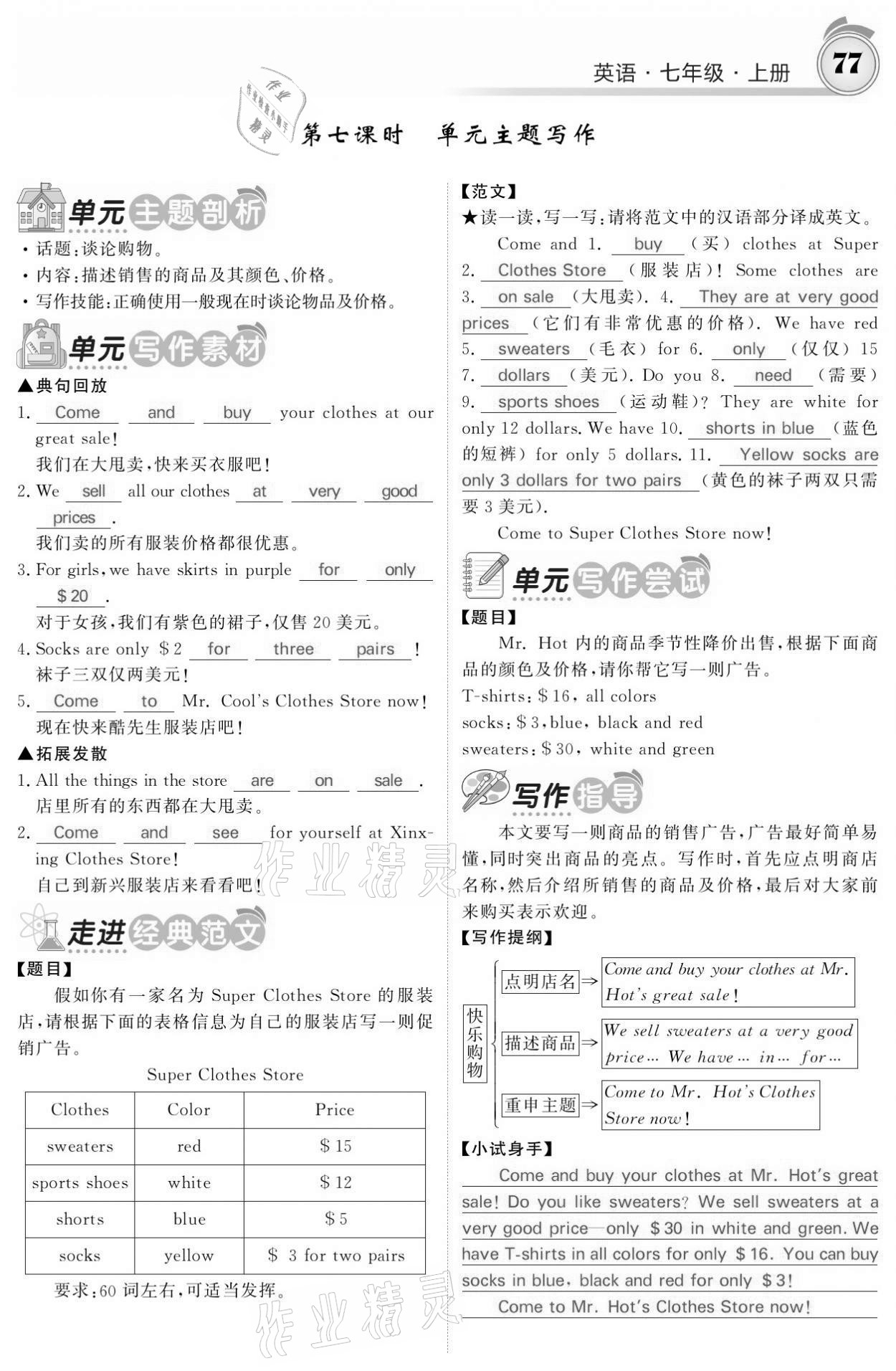2021年名校课堂内外七年级英语上册人教版黔东南专版