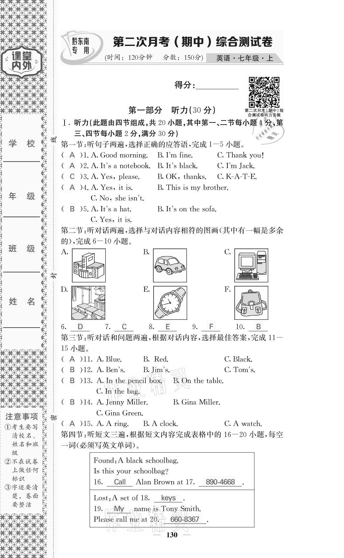 注:目前有些书本章节名称可能整理的还不是很完善,但都是按照顺序排列的,请同学们按照顺序仔细查找。练习册 2021年名校课堂内外七年级英语上册人教版黔东南专版 答案主要是用来给同学们做完题方便对答案用的,请勿直接抄袭。