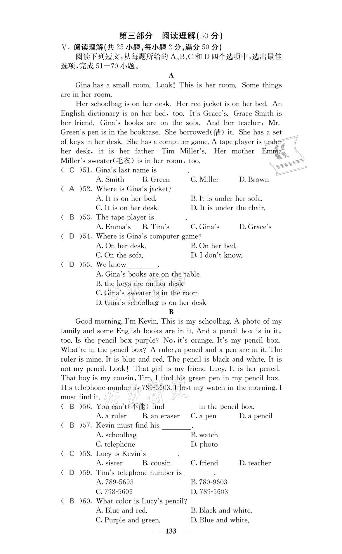 注:目前有些书本章节名称可能整理的还不是很完善,但都是按照顺序排列的,请同学们按照顺序仔细查找。练习册 2021年名校课堂内外七年级英语上册人教版黔东南专版 答案主要是用来给同学们做完题方便对答案用的,请勿直接抄袭。