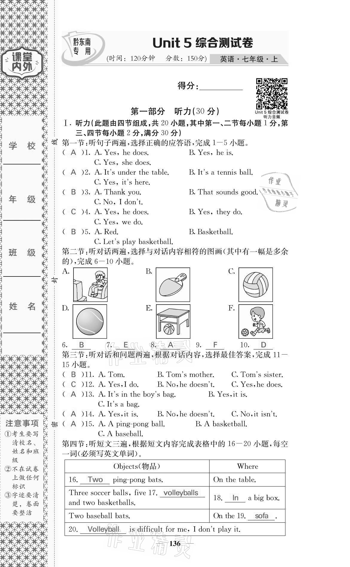 注:目前有些书本章节名称可能整理的还不是很完善,但都是按照顺序排列的,请同学们按照顺序仔细查找。练习册 2021年名校课堂内外七年级英语上册人教版黔东南专版 答案主要是用来给同学们做完题方便对答案用的,请勿直接抄袭。