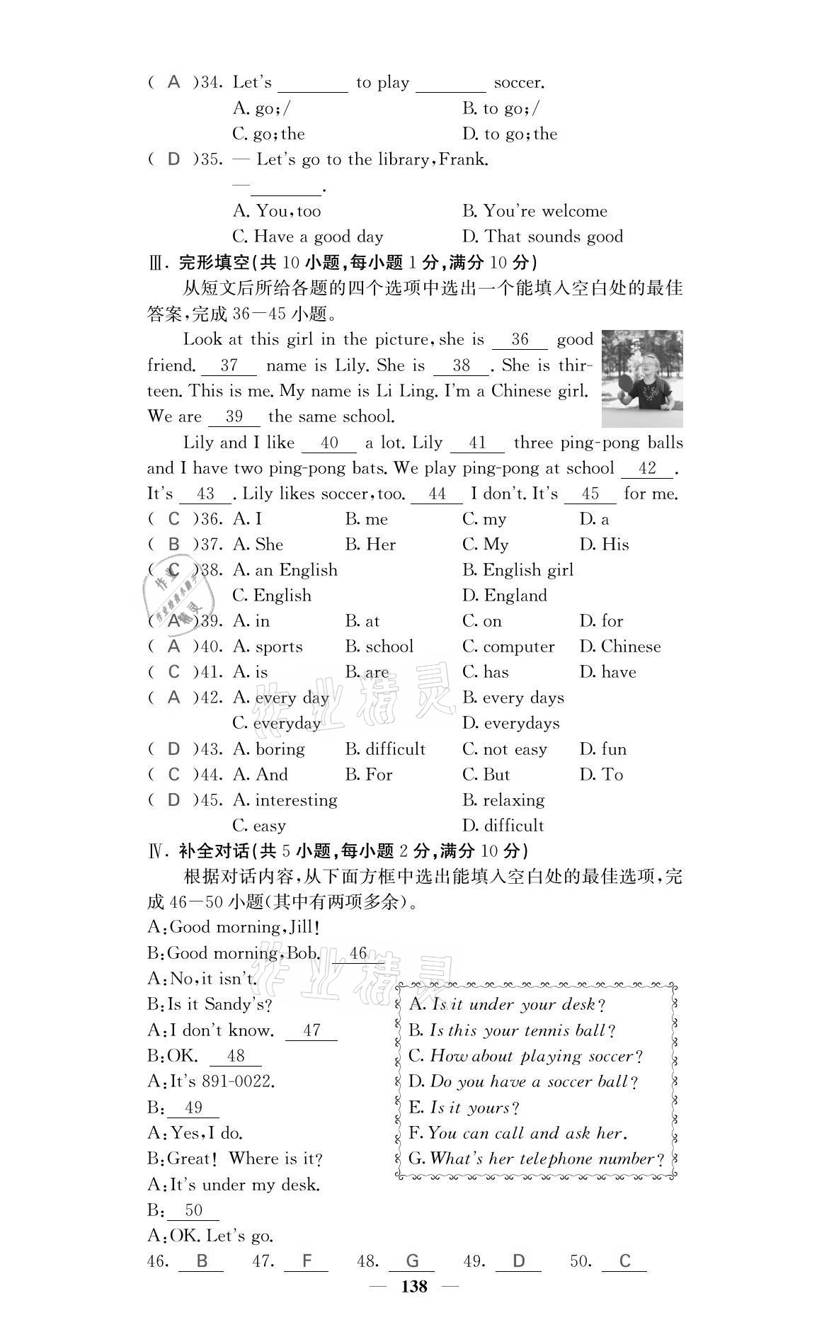 注:目前有些书本章节名称可能整理的还不是很完善,但都是按照顺序排列的,请同学们按照顺序仔细查找。练习册 2021年名校课堂内外七年级英语上册人教版黔东南专版 答案主要是用来给同学们做完题方便对答案用的,请勿直接抄袭。