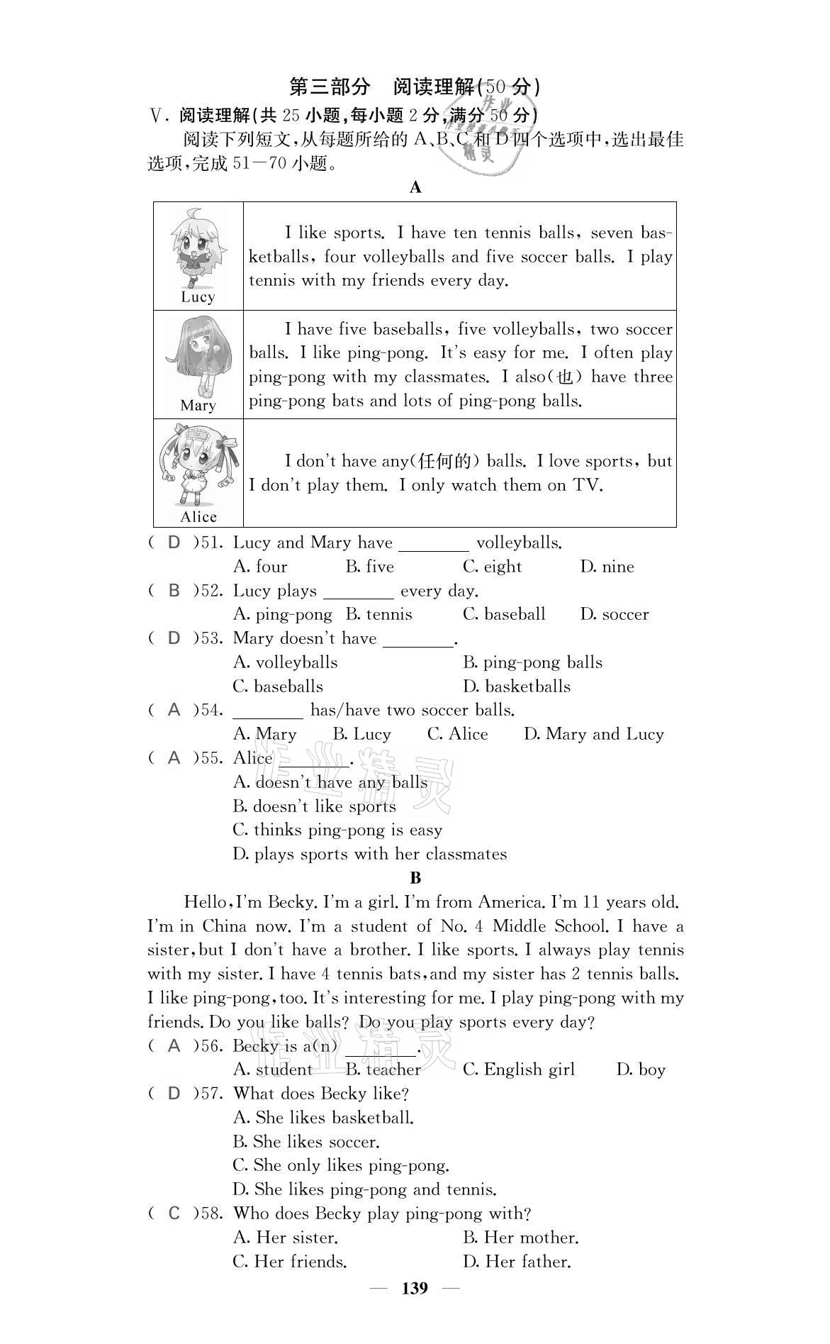 - 参考答案第51页