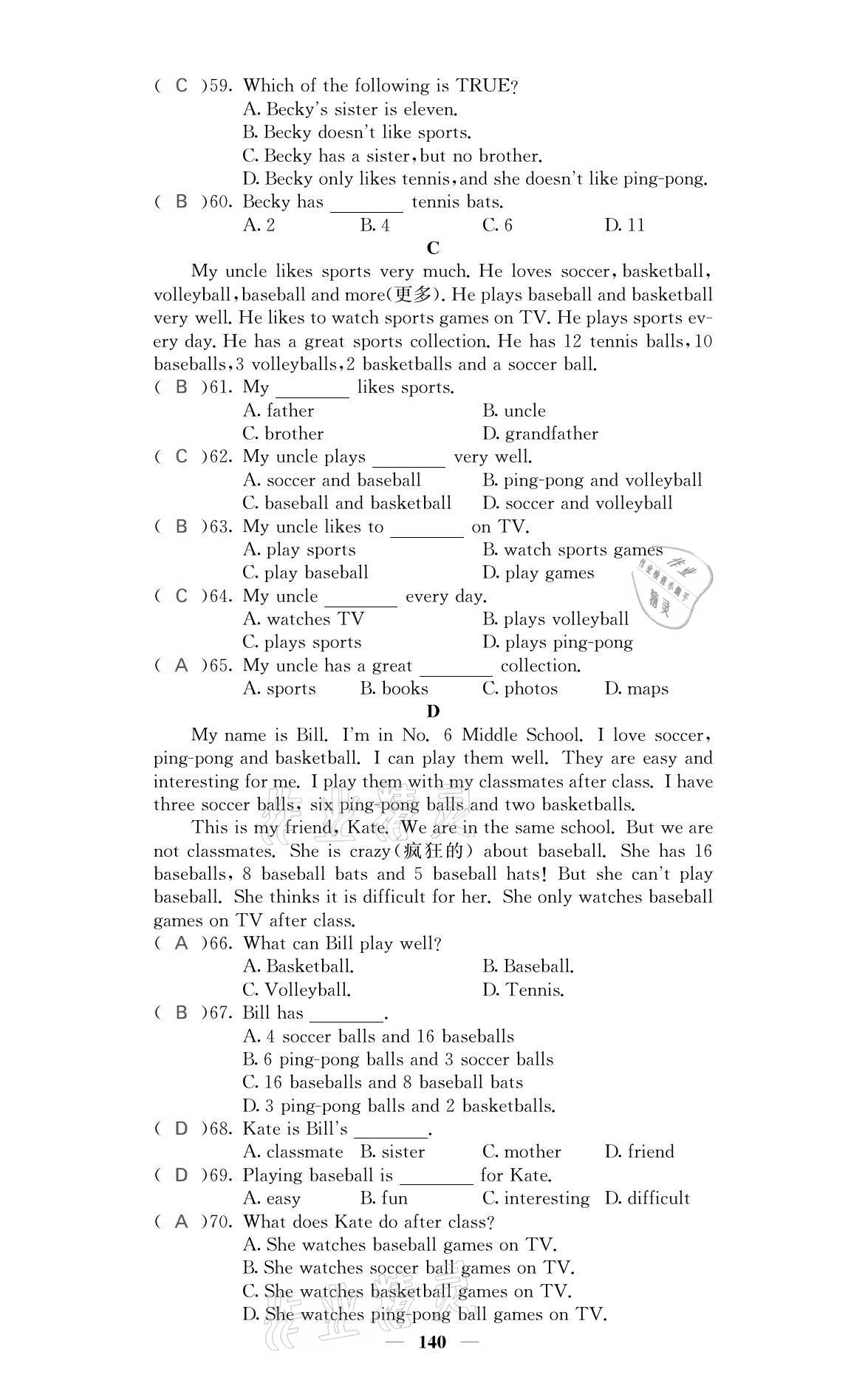 注:目前有些书本章节名称可能整理的还不是很完善,但都是按照顺序排列的,请同学们按照顺序仔细查找。练习册 2021年名校课堂内外七年级英语上册人教版黔东南专版 答案主要是用来给同学们做完题方便对答案用的,请勿直接抄袭。
