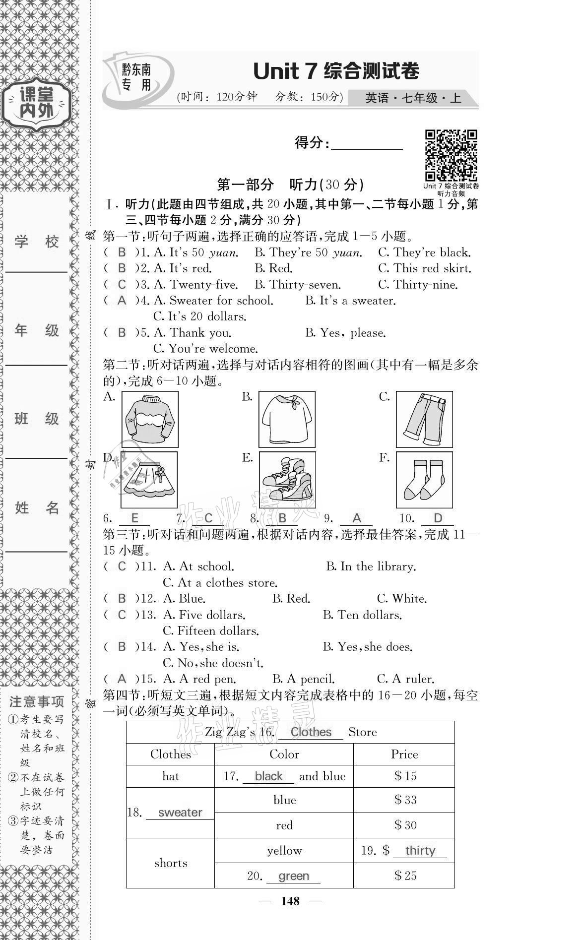 注:目前有些书本章节名称可能整理的还不是很完善,但都是按照顺序排列的,请同学们按照顺序仔细查找。练习册 2021年名校课堂内外七年级英语上册人教版黔东南专版 答案主要是用来给同学们做完题方便对答案用的,请勿直接抄袭。