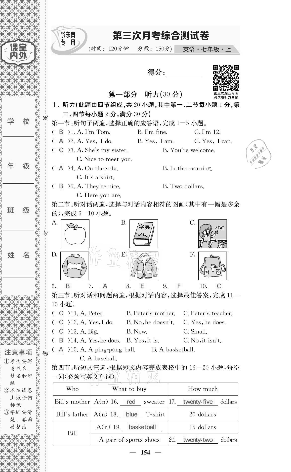 注:目前有些书本章节名称可能整理的还不是很完善,但都是按照顺序排列的,请同学们按照顺序仔细查找。练习册 2021年名校课堂内外七年级英语上册人教版黔东南专版 答案主要是用来给同学们做完题方便对答案用的,请勿直接抄袭。