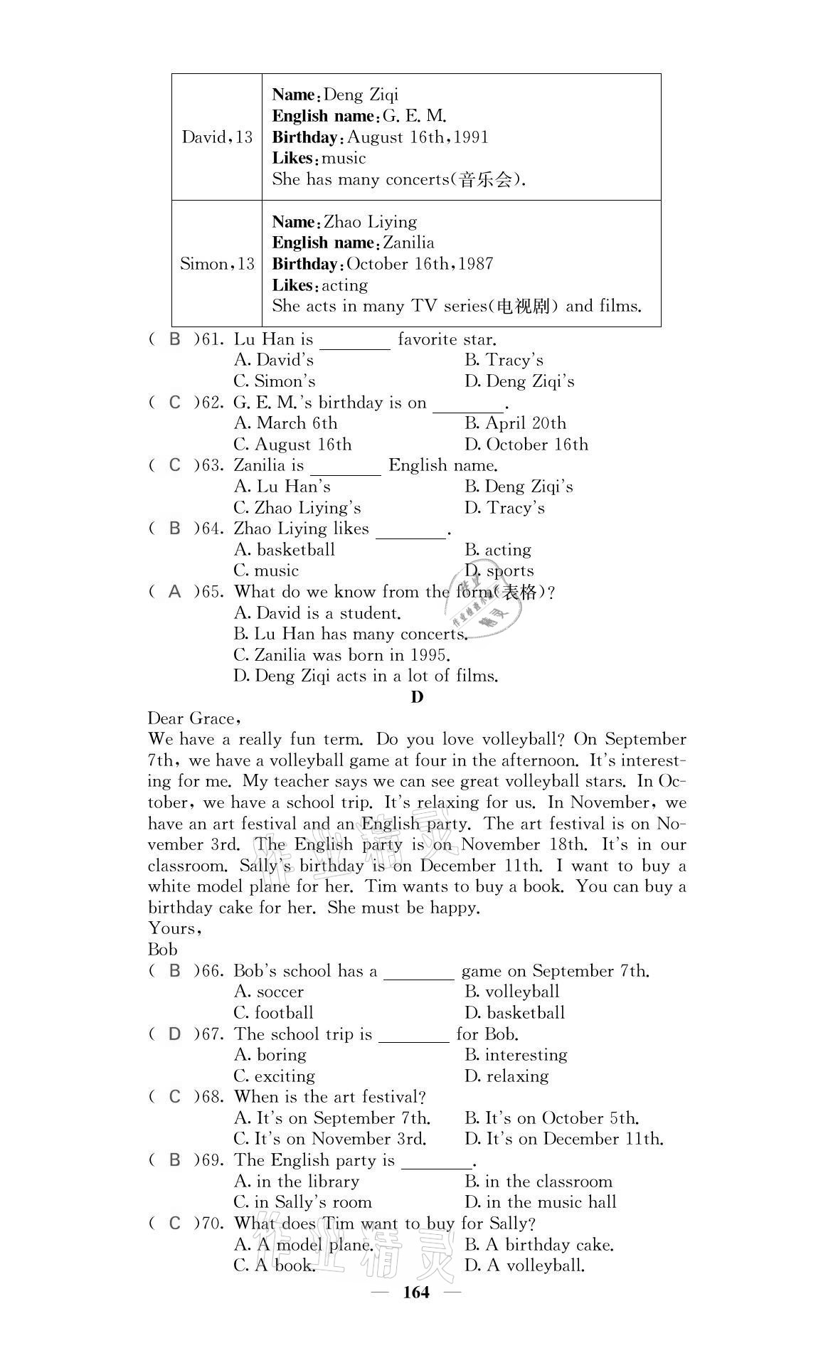 注:目前有些书本章节名称可能整理的还不是很完善,但都是按照顺序排列的,请同学们按照顺序仔细查找。练习册 2021年名校课堂内外七年级英语上册人教版黔东南专版 答案主要是用来给同学们做完题方便对答案用的,请勿直接抄袭。