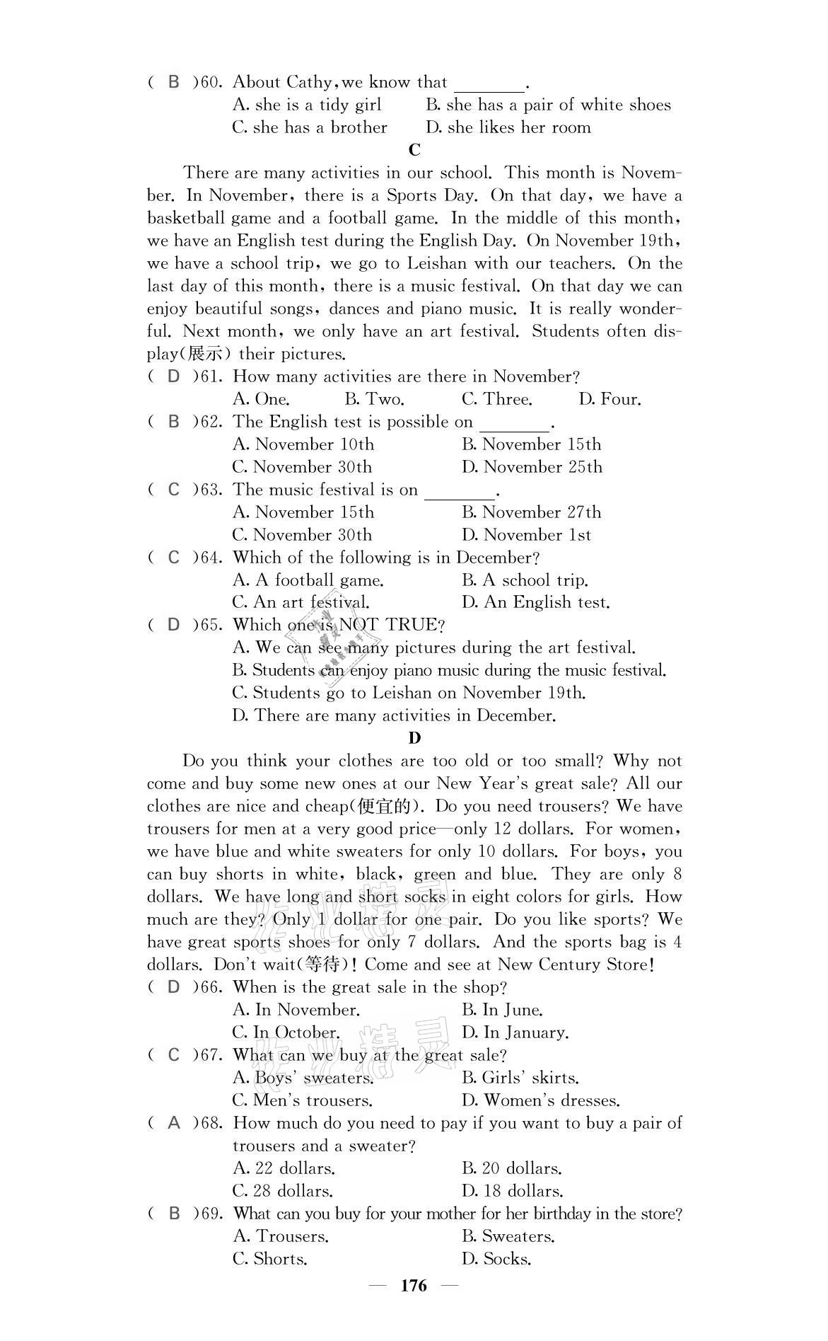 注:目前有些书本章节名称可能整理的还不是很完善,但都是按照顺序排列的,请同学们按照顺序仔细查找。练习册 2021年名校课堂内外七年级英语上册人教版黔东南专版 答案主要是用来给同学们做完题方便对答案用的,请勿直接抄袭。