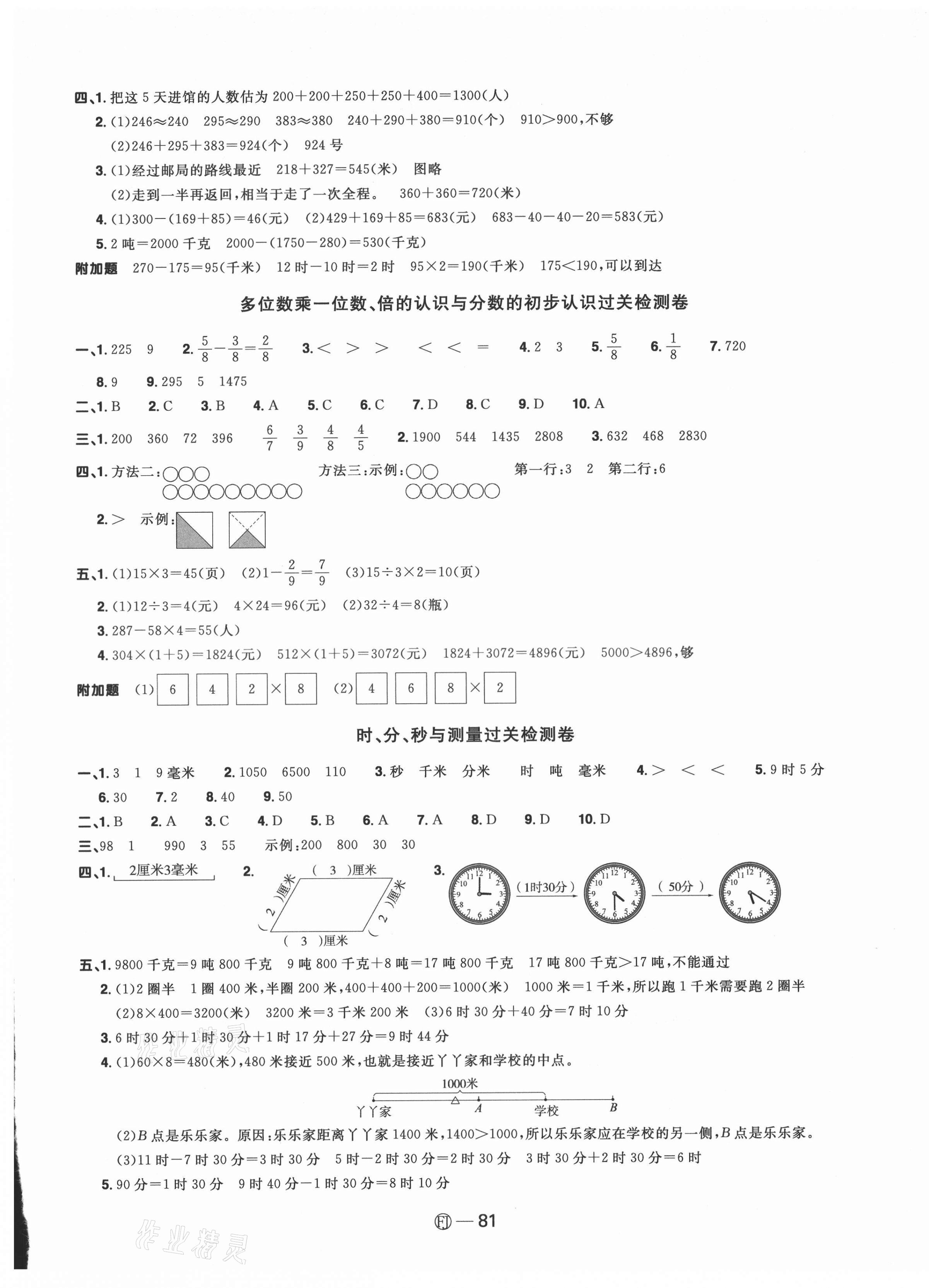 注:目前有些书本章节名称可能整理的还不是很完善,但都是按照顺序排列的,请同学们按照顺序仔细查找。练习册 2021年阳光同学一线名师全优好卷三年级数学上册人教版福建专版 答案主要是用来给同学们做完题方便对答案用的,请勿直接抄袭。