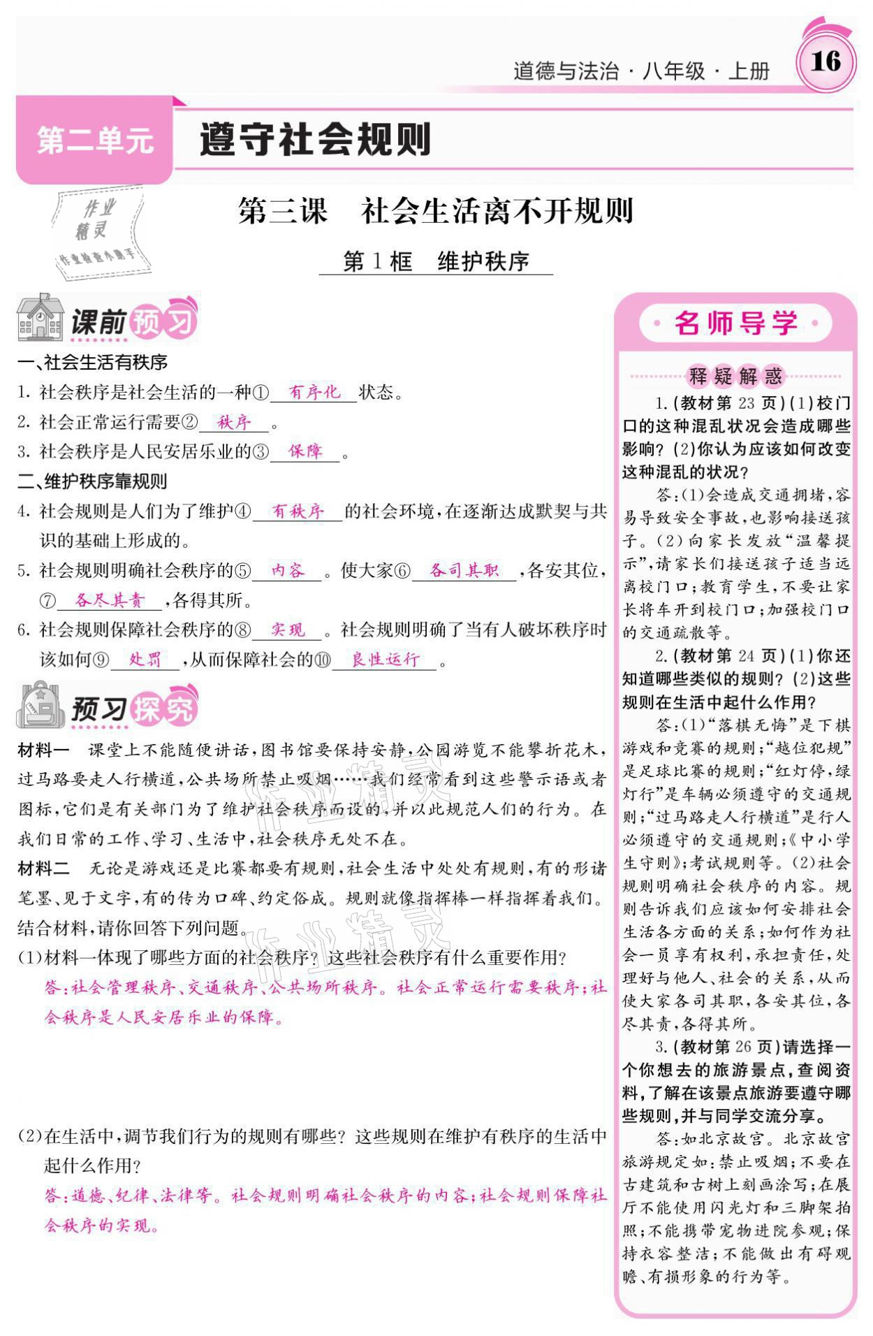 注:目前有些书本章节名称可能整理的还不是很完善,但都是按照顺序排列的,请同学们按照顺序仔细查找。练习册 2021年名校课堂内外八年级道德与法治上册人教版黔东南专版 答案主要是用来给同学们做完题方便对答案用的,请勿直接抄袭。