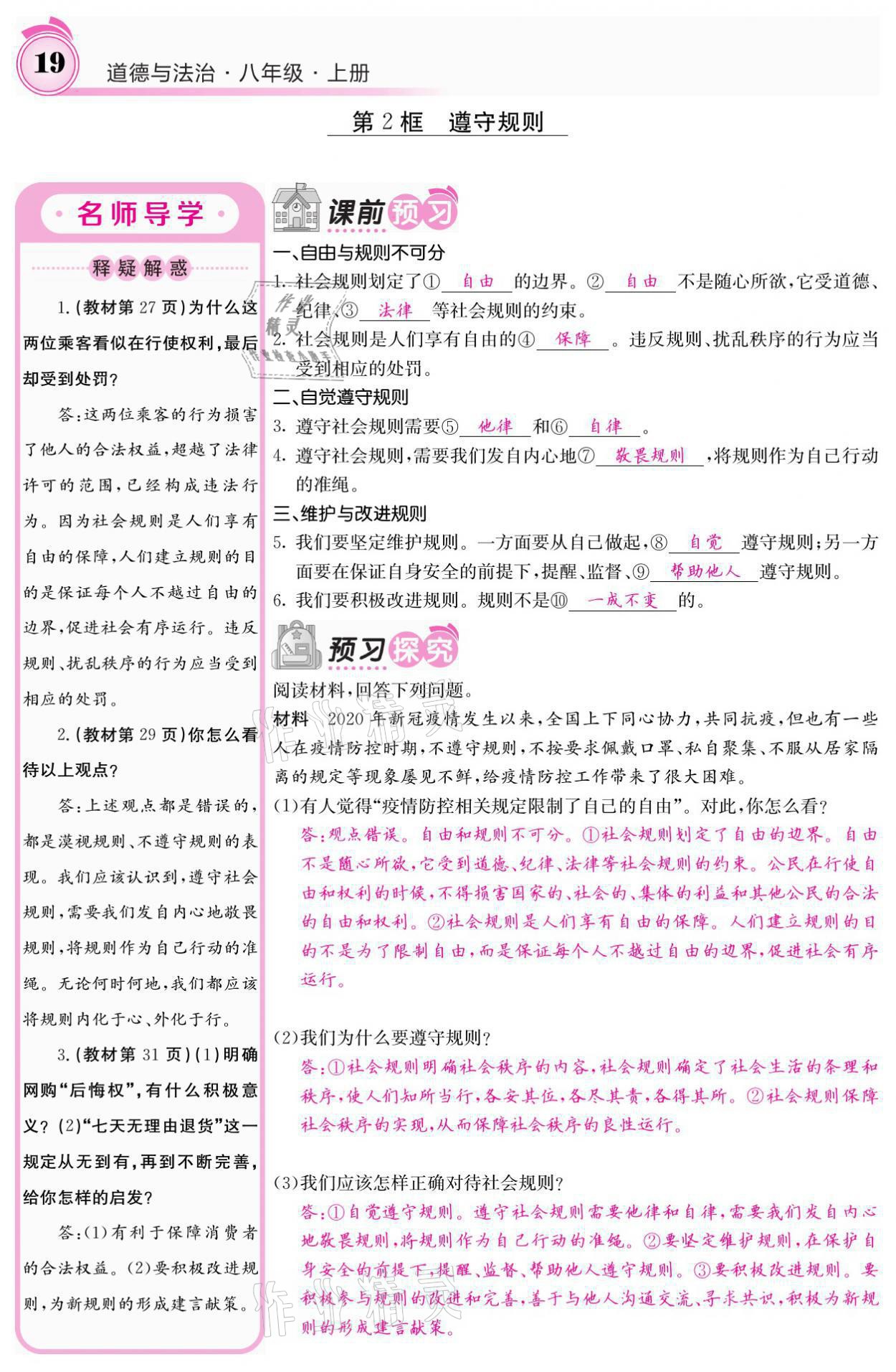 2021年名校课堂内外八年级道德与法治上册人教版黔东南专版