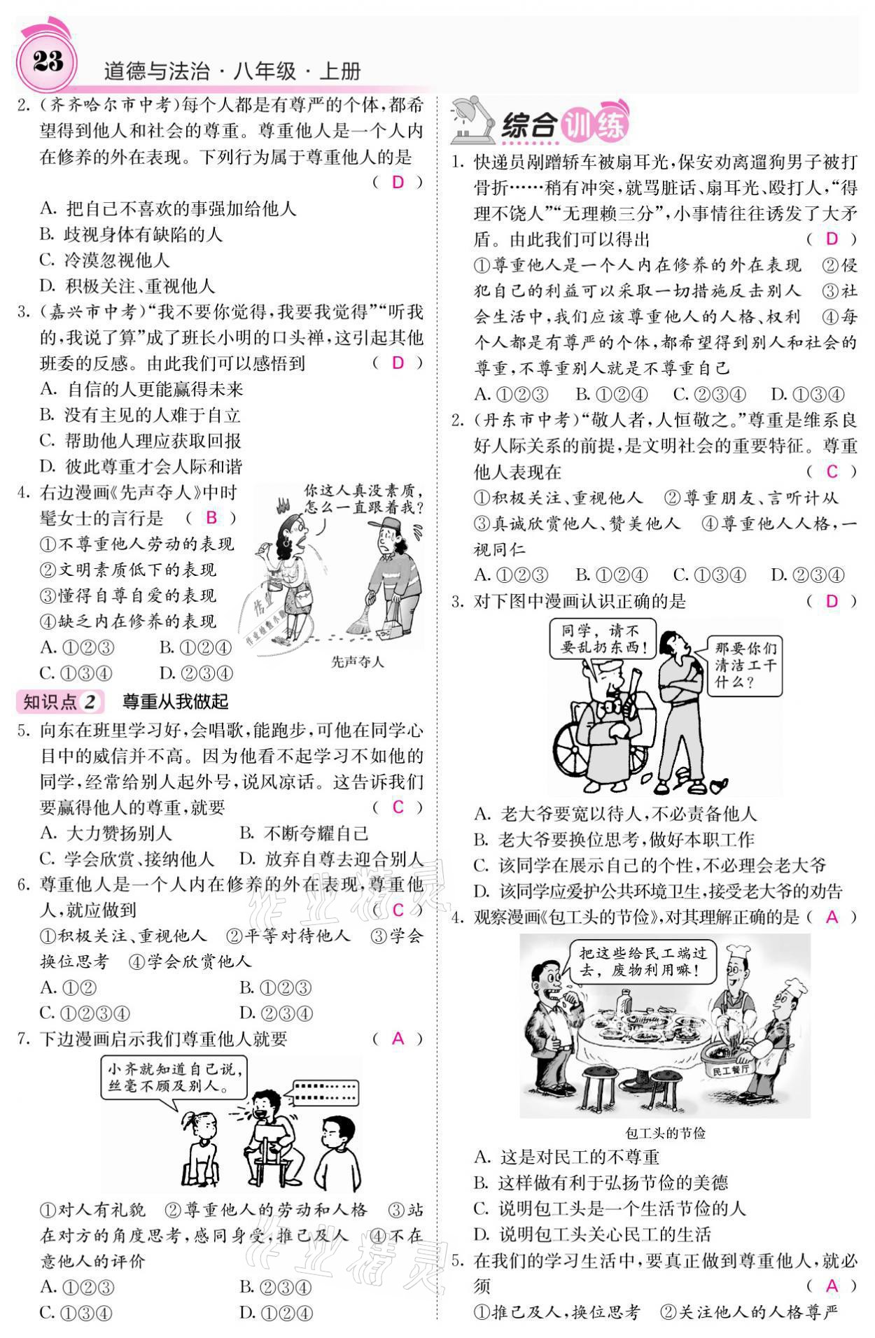 2021年名校课堂内外八年级道德与法治上册人教版黔东南专版