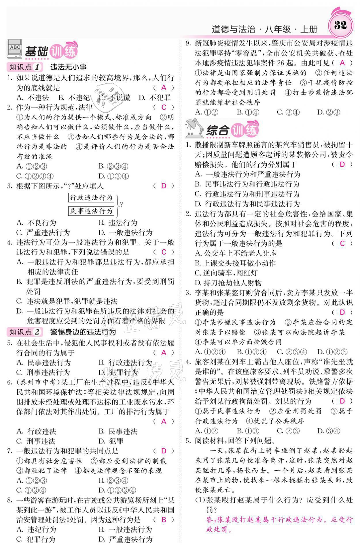 注:目前有些书本章节名称可能整理的还不是很完善,但都是按照顺序排列的,请同学们按照顺序仔细查找。练习册 2021年名校课堂内外八年级道德与法治上册人教版黔东南专版 答案主要是用来给同学们做完题方便对答案用的,请勿直接抄袭。
