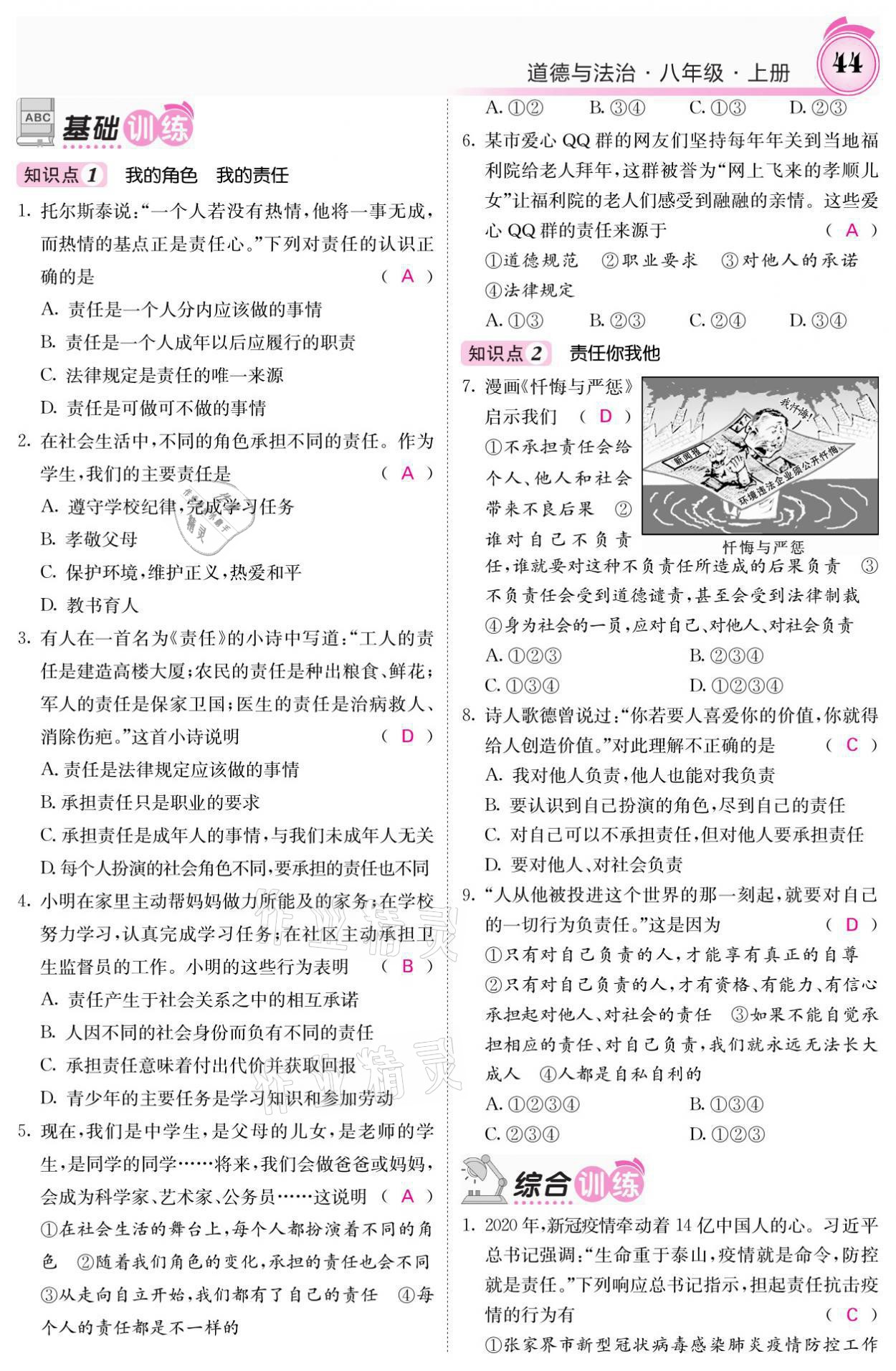 注:目前有些书本章节名称可能整理的还不是很完善,但都是按照顺序排列的,请同学们按照顺序仔细查找。练习册 2021年名校课堂内外八年级道德与法治上册人教版黔东南专版 答案主要是用来给同学们做完题方便对答案用的,请勿直接抄袭。