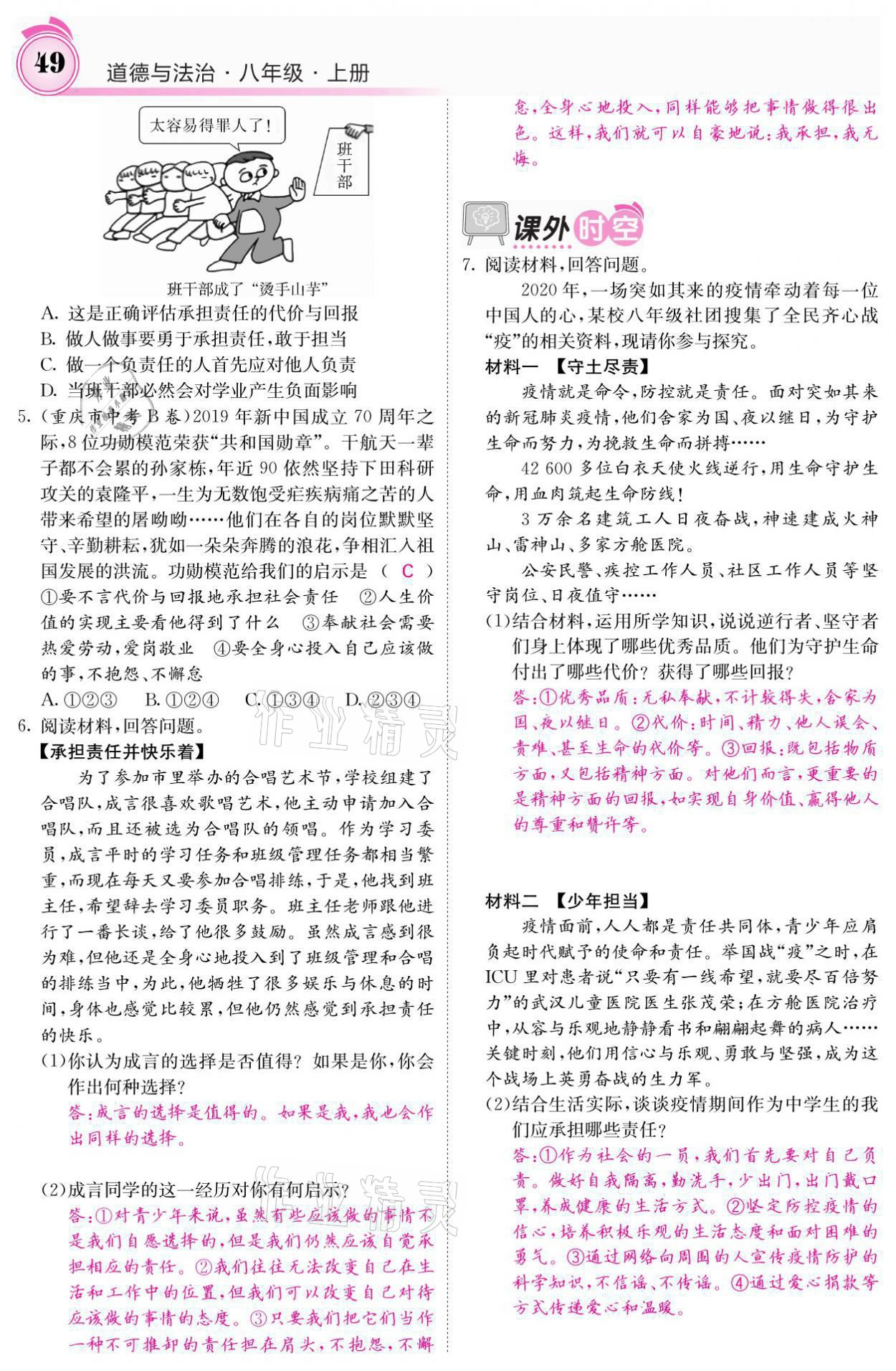 注:目前有些书本章节名称可能整理的还不是很完善,但都是按照顺序排列的,请同学们按照顺序仔细查找。练习册 2021年名校课堂内外八年级道德与法治上册人教版黔东南专版 答案主要是用来给同学们做完题方便对答案用的,请勿直接抄袭。