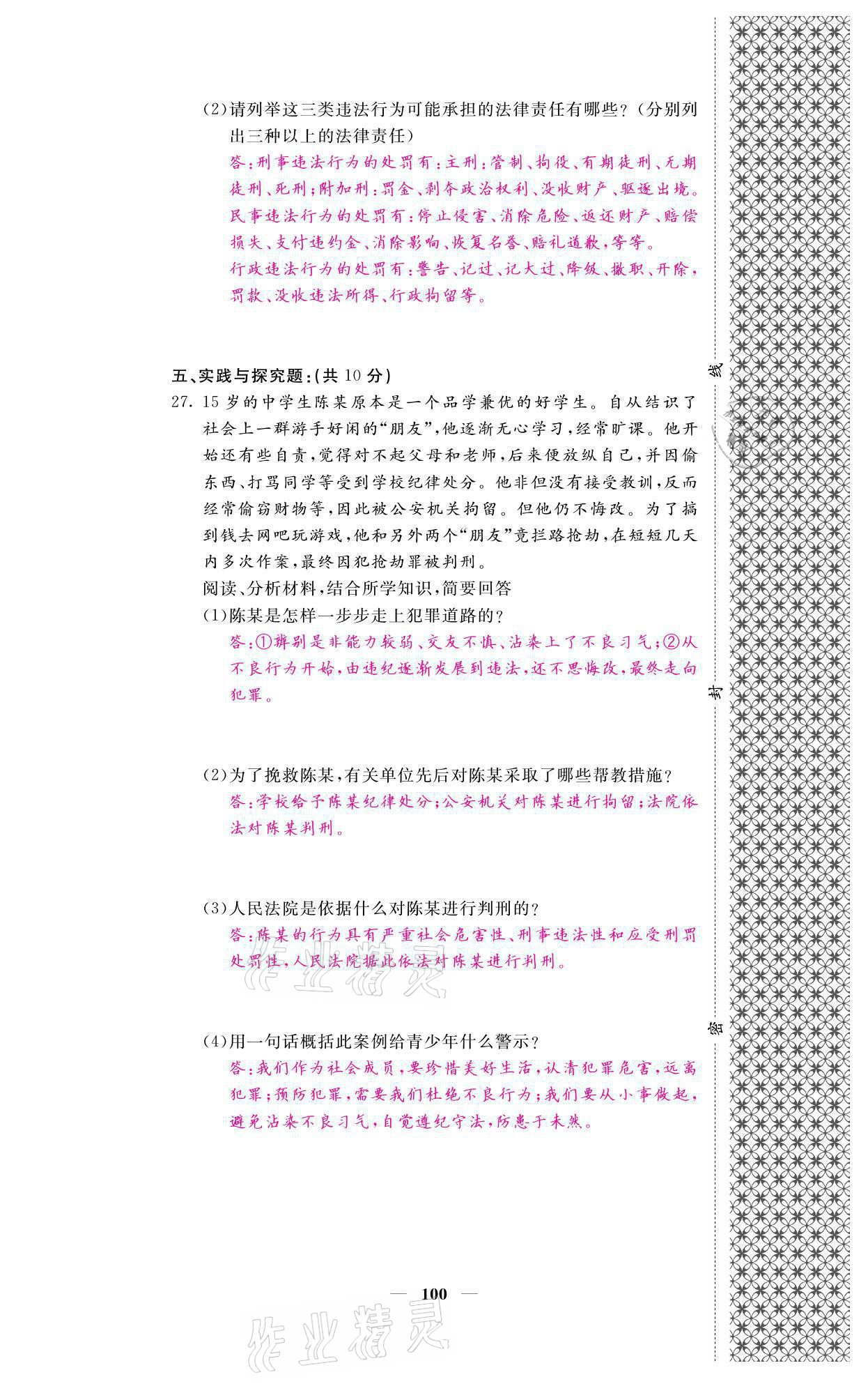 注:目前有些书本章节名称可能整理的还不是很完善,但都是按照顺序排列的,请同学们按照顺序仔细查找。练习册 2021年名校课堂内外八年级道德与法治上册人教版黔东南专版 答案主要是用来给同学们做完题方便对答案用的,请勿直接抄袭。