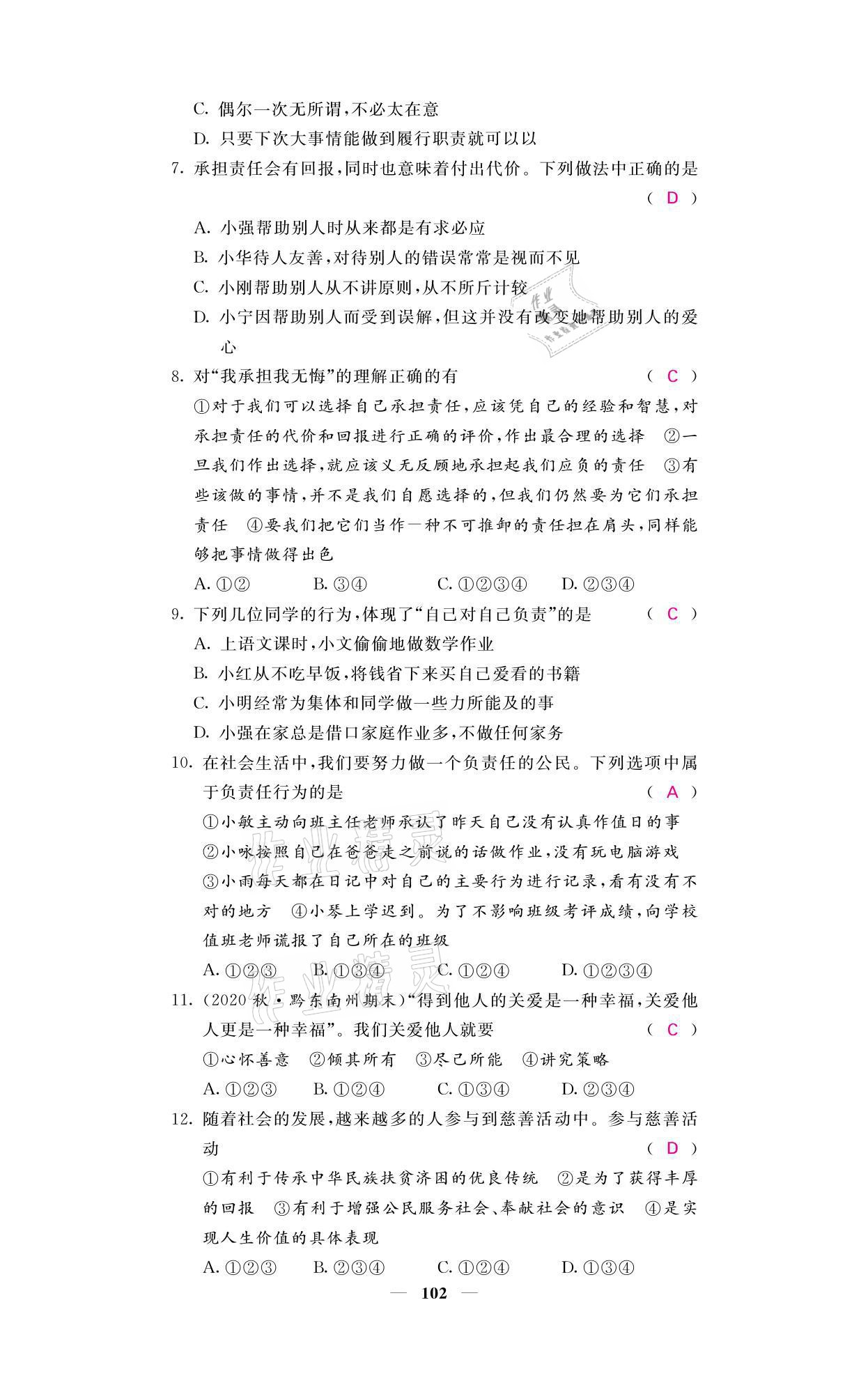 注:目前有些书本章节名称可能整理的还不是很完善,但都是按照顺序排列的,请同学们按照顺序仔细查找。练习册 2021年名校课堂内外八年级道德与法治上册人教版黔东南专版 答案主要是用来给同学们做完题方便对答案用的,请勿直接抄袭。