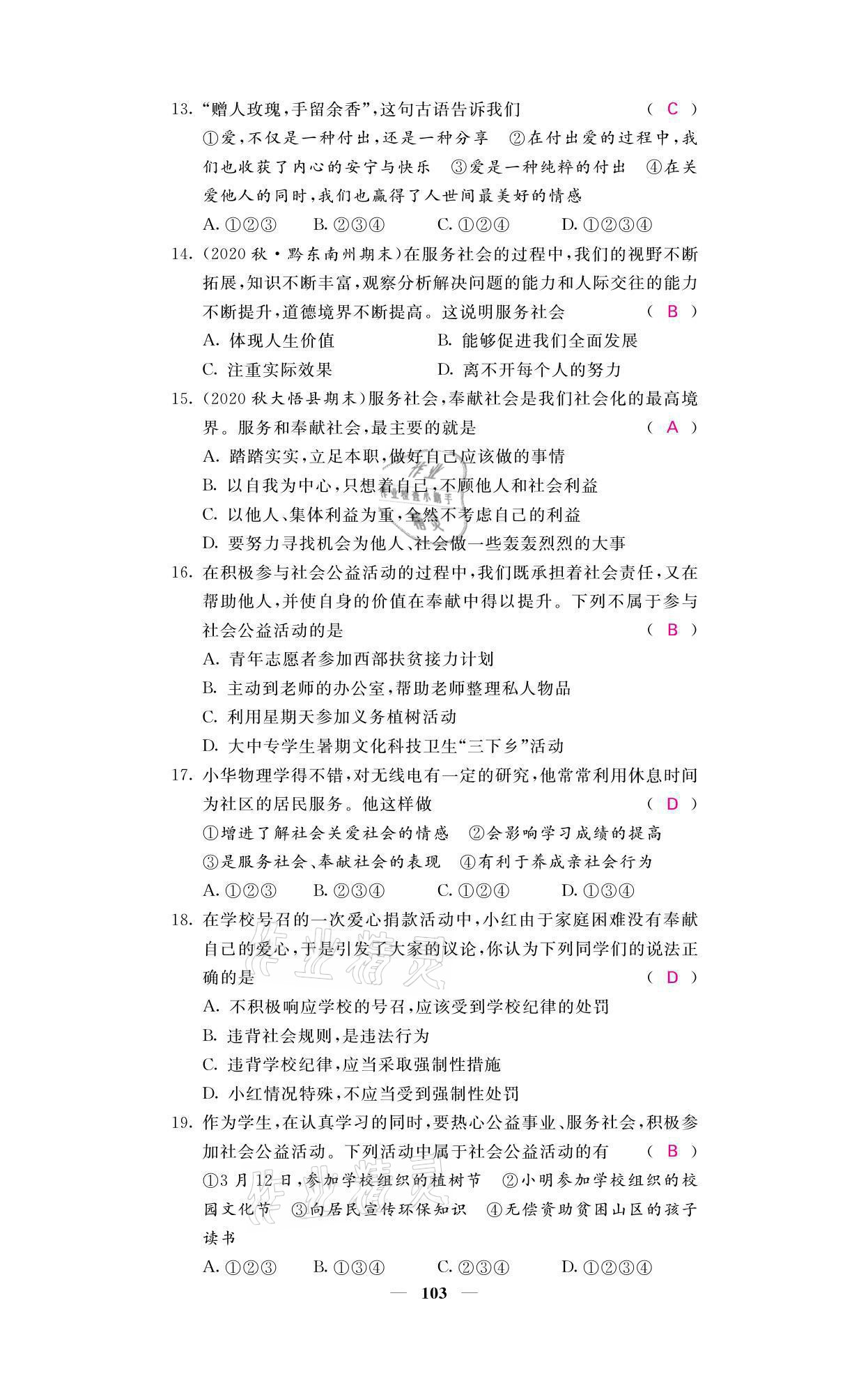 注:目前有些书本章节名称可能整理的还不是很完善,但都是按照顺序排列的,请同学们按照顺序仔细查找。练习册 2021年名校课堂内外八年级道德与法治上册人教版黔东南专版 答案主要是用来给同学们做完题方便对答案用的,请勿直接抄袭。