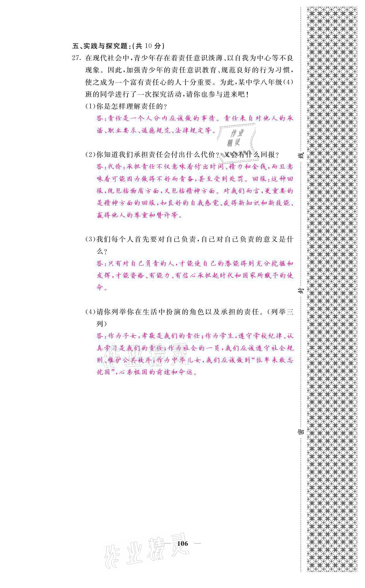 注:目前有些书本章节名称可能整理的还不是很完善,但都是按照顺序排列的,请同学们按照顺序仔细查找。练习册 2021年名校课堂内外八年级道德与法治上册人教版黔东南专版 答案主要是用来给同学们做完题方便对答案用的,请勿直接抄袭。