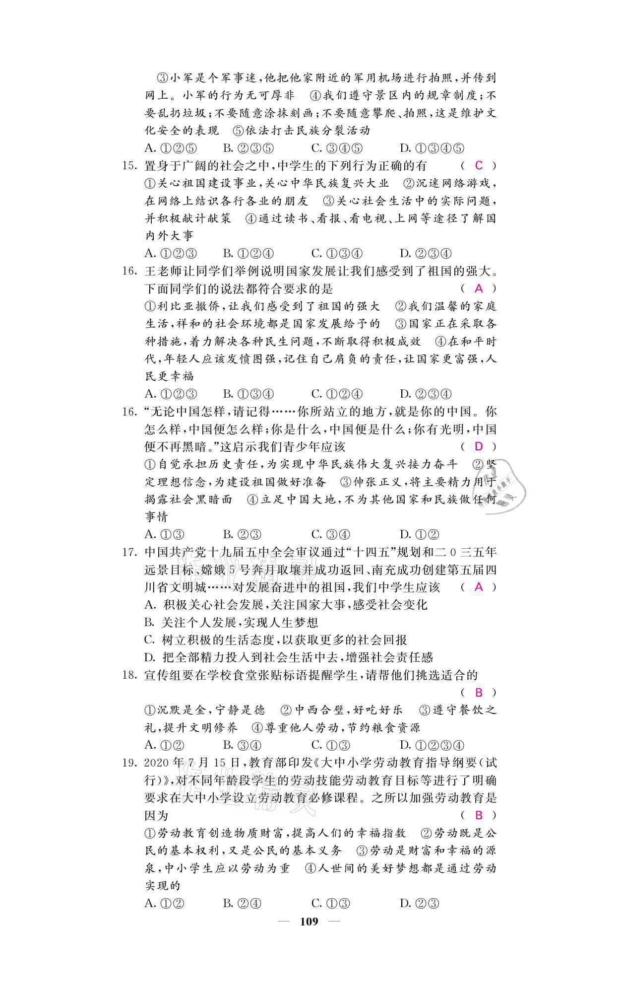 注:目前有些书本章节名称可能整理的还不是很完善,但都是按照顺序排列的,请同学们按照顺序仔细查找。练习册 2021年名校课堂内外八年级道德与法治上册人教版黔东南专版 答案主要是用来给同学们做完题方便对答案用的,请勿直接抄袭。