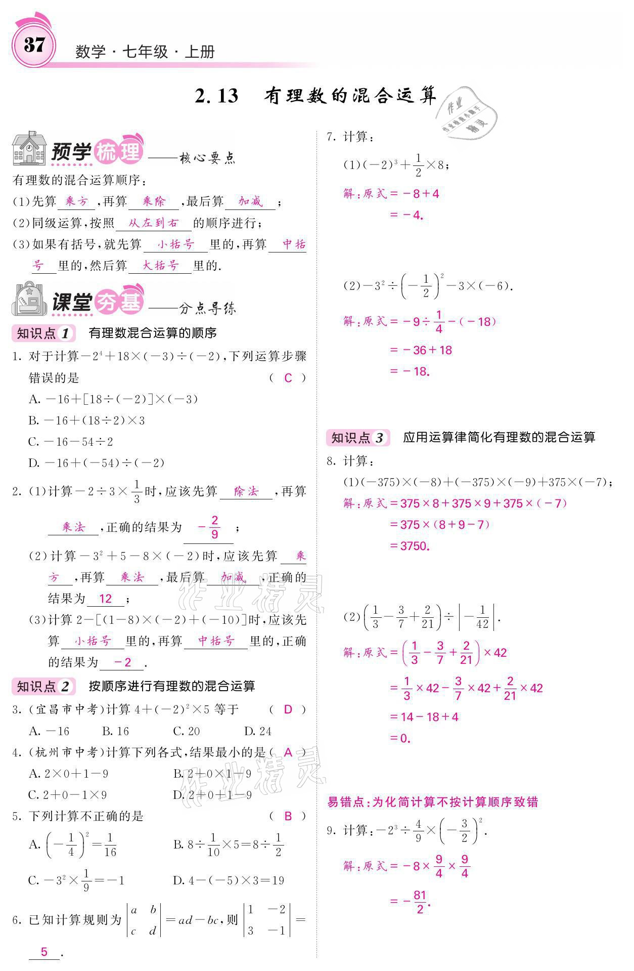 注:目前有些书本章节名称可能整理的还不是很完善,但都是按照顺序排列的,请同学们按照顺序仔细查找。练习册 2021年名校课堂内外七年级数学上册华师大版 答案主要是用来给同学们做完题方便对答案用的,请勿直接抄袭。