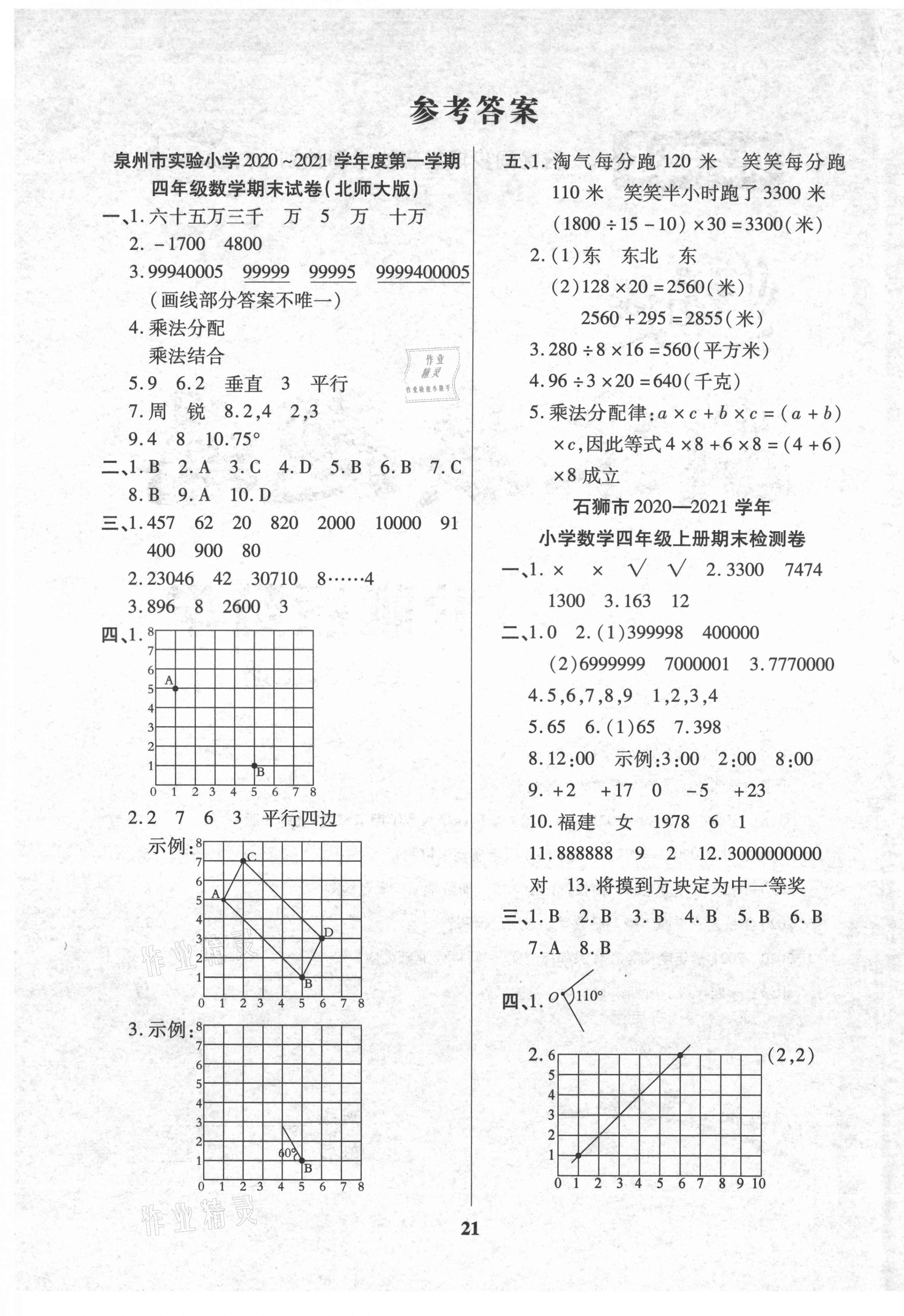 注:目前有些书本章节名称可能整理的还不是很完善,但都是按照顺序排列的,请同学们按照顺序仔细查找。练习册 2021年培优三好生数学四年级上册北师大版B版福建专版 答案主要是用来给同学们做完题方便对答案用的,请勿直接抄袭。