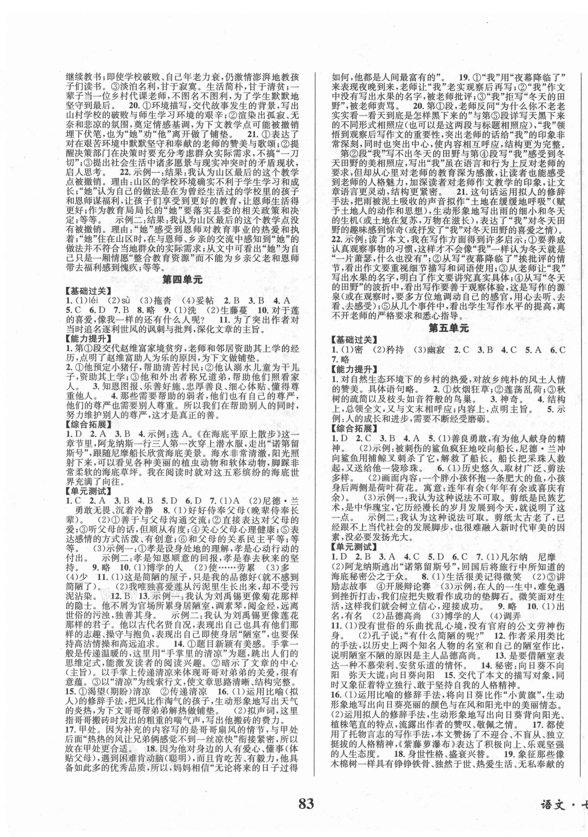 2021年快乐之星暑假篇七年级语文