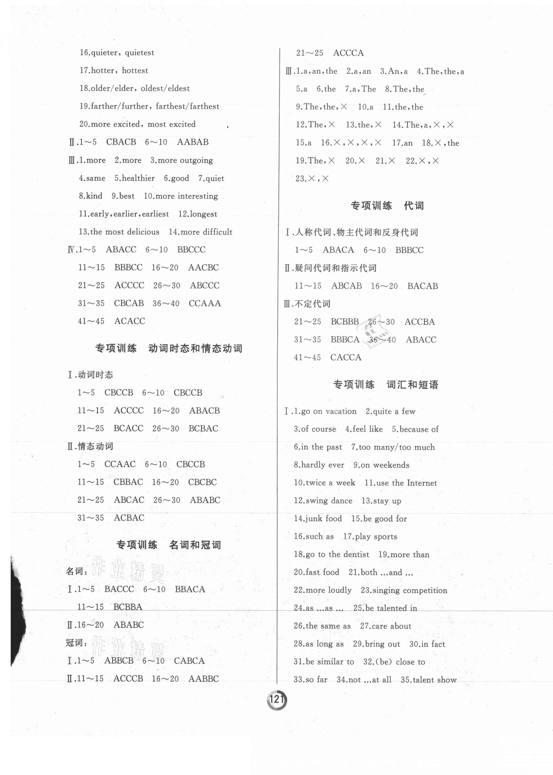 注:目前有些书本章节名称可能整理的还不是很完善,但都是按照顺序排列的,请同学们按照顺序仔细查找。练习册 2021年诚成教育学业评价八年级英语上册人教版 答案主要是用来给同学们做完题方便对答案用的,请勿直接抄袭。