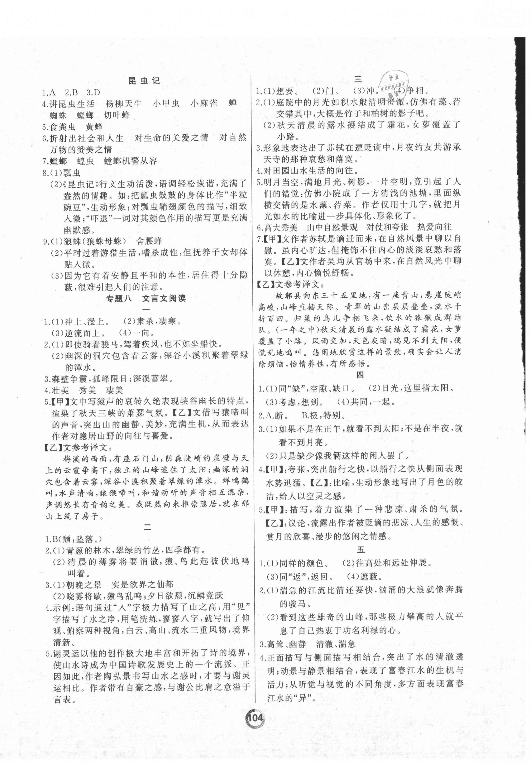 注:目前有些书本章节名称可能整理的还不是很完善,但都是按照顺序排列的,请同学们按照顺序仔细查找。练习册 2021年诚成教育学业评价八年级语文上册人教版 答案主要是用来给同学们做完题方便对答案用的,请勿直接抄袭。