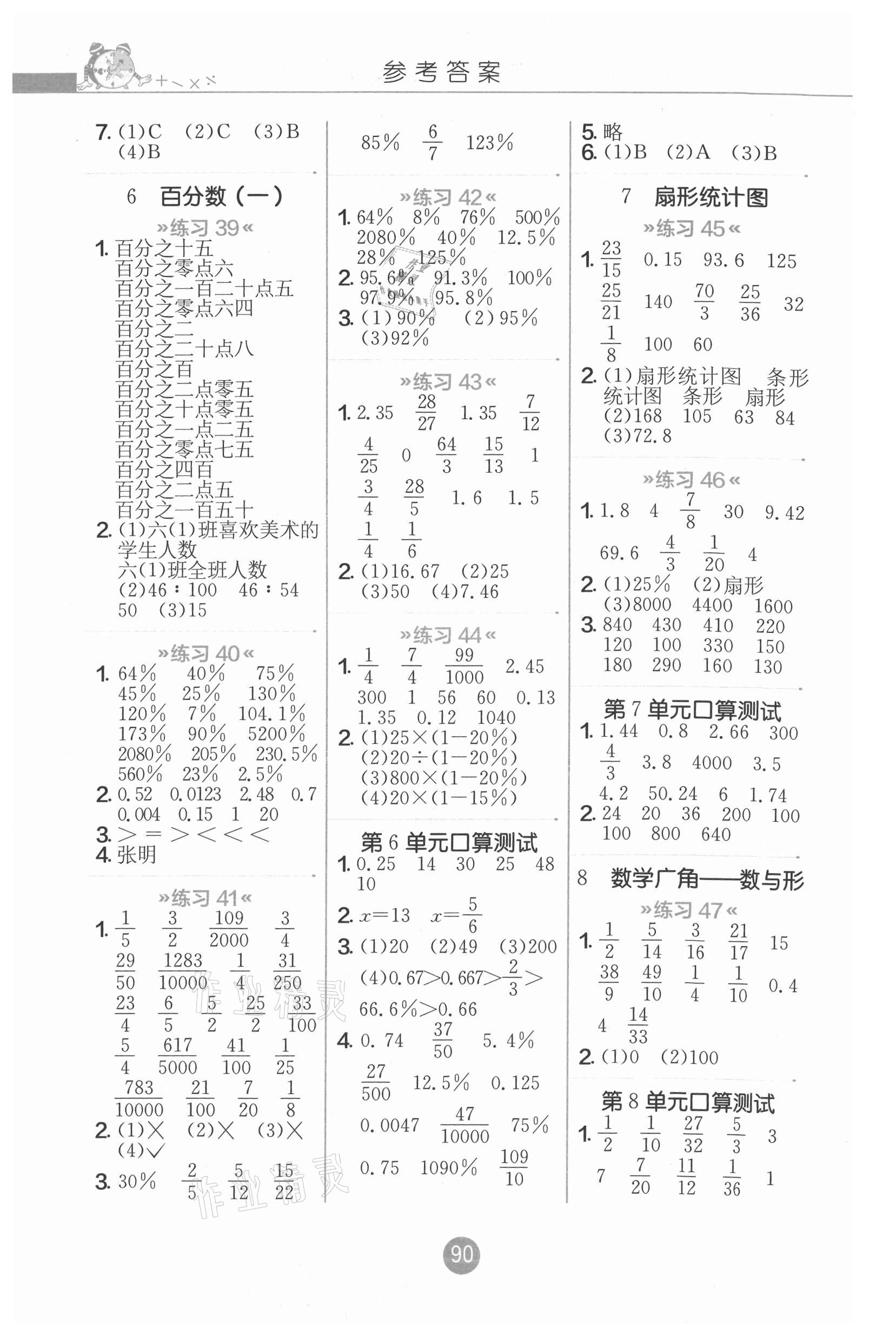 注:目前有些书本章节名称可能整理的还不是很完善,但都是按照顺序排列的,请同学们按照顺序仔细查找。练习册 2021年口算心算速算天天练江苏人民出版社六年级数学上册人教版 答案主要是用来给同学们做完题方便对答案用的,请勿直接抄袭。